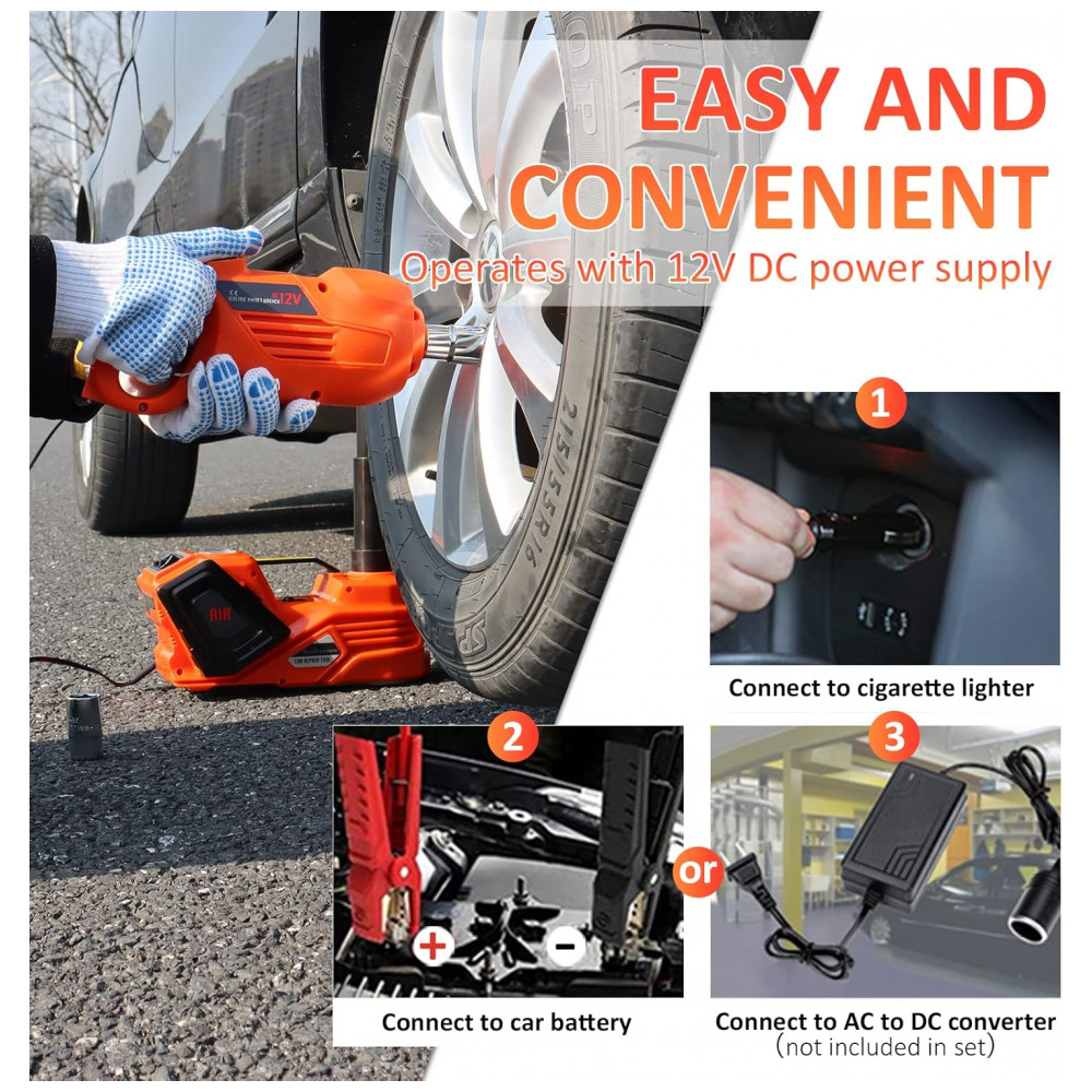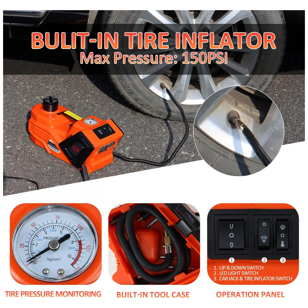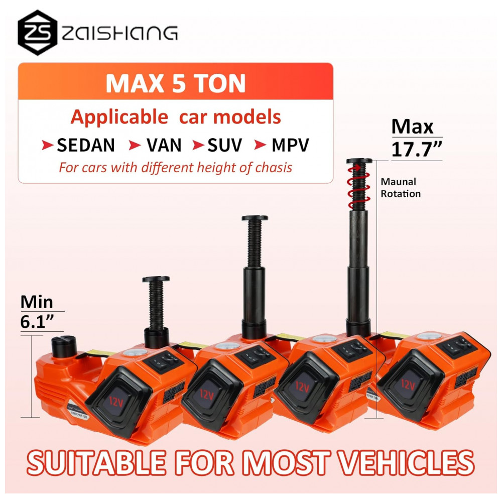 Kit de Macaco Elétrico ZS ZAISHANG 5 Toneladas com Alcance de Elevação de 155 a 45 cm e Chave de Impacto Inflador de Pneus para Troca de Pneus de SUV