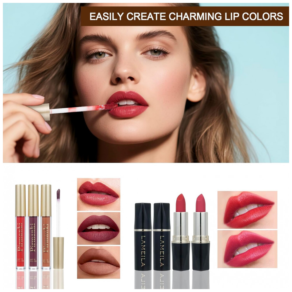 Kit de maquiagem completo TooAemiS desenvolvido para organizar em um único estojo produtos para olhos, lábios e rosto, facilitando o uso diário e o transporte em viagens. A seleção inclui itens em creme, líquido e pó, permitindo diferentes acabamentos e combinações de cores em uma única paleta. A fórmula dos produtos é indicada para diversos tons de pele, com textura pensada para boa aderência e efeito de longa duração em maquiagens para uso cotidiano ou ocasiões especiais.