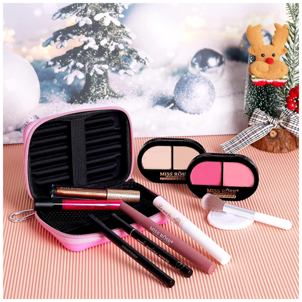 O Kit de Maquiagem Completo Tudo em Um AOLIKOKO (ASIN B0B3136XD6) integra paleta de 12 cores de sombra com acabamentos matte e shimmer, base de cobertura total, primer facial, batons líquidos, corretivo multicamadas, blush em pó, máscara para cílios volumizante, delineador preciso, pó compacto e pincéis multifuncionais. As fórmulas apresentam alta pigmentação com textura sedosa e líquida, resistência à água, extensibilidade otimizada e aderência prolongada para aplicação uniforme e acabamento tridimensional.