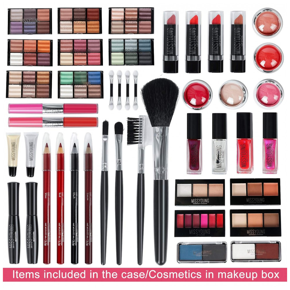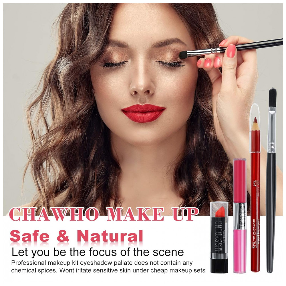 Kit de Maquiagem Essencial Tudo em Um Pure Vie Paleta de Sombras Batom Corretivo Blush Máscara Delineador Pó Facial Gloss e Pincel