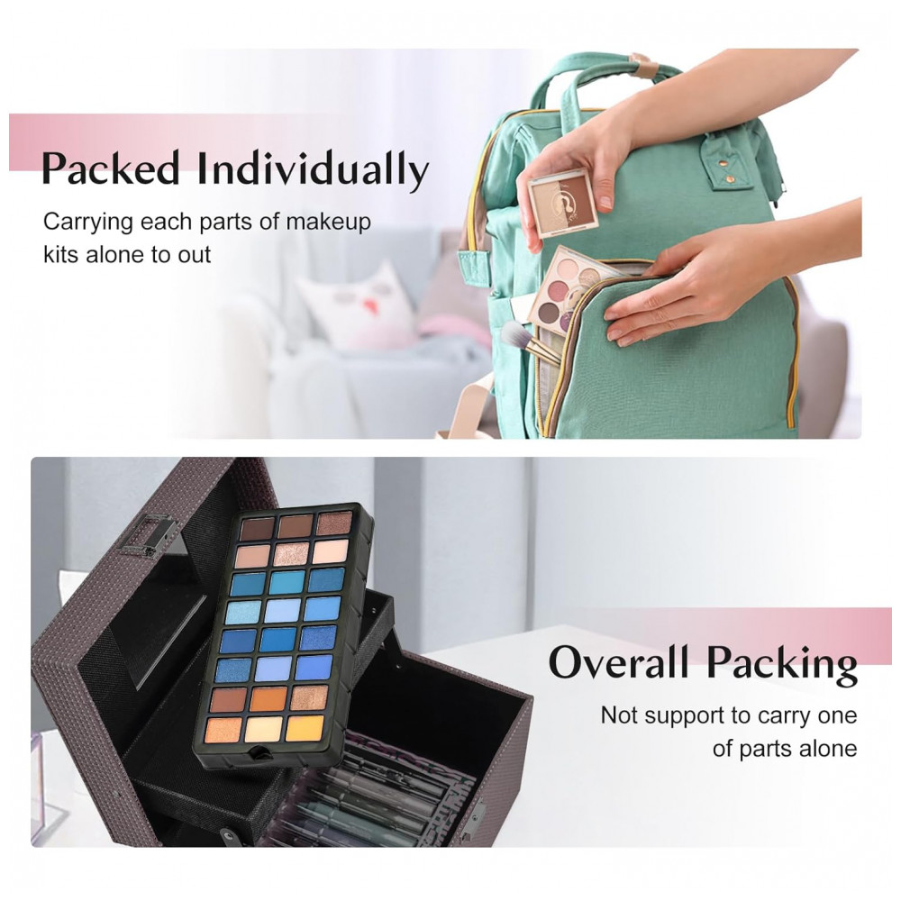 Maquiagens compactas e portáteis: A maleta de trem estilo retrô reutilizável terá todas as suas peças de maquiagem organizadas. É conveniente para você carregá-la para qualquer ocasião, como festas, shows, apresentações, etc. Escolha seus cosméticos e coloque-os facilmente.