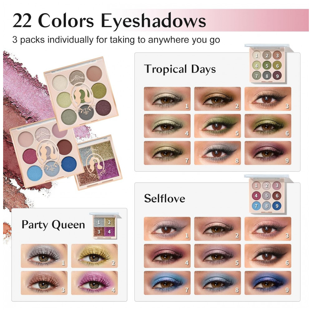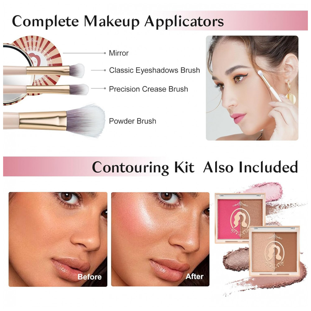 Cosméticos e ferramentas universais: Os conjuntos de maquiagem para adolescentes de 14 a 16 anos incluem 18 sombras, 5 brilhos labiais, 4 cremes com brilho corporal, 2 marcadores, 1 bronzeador, 1 blush, 1 batom, 1 protetor labial, 1 delineador labial, 1 lápis de sobrancelha , 1 rímel, 3 pincéis de maquiagem, 1 espelho, 1 estojo de trem.