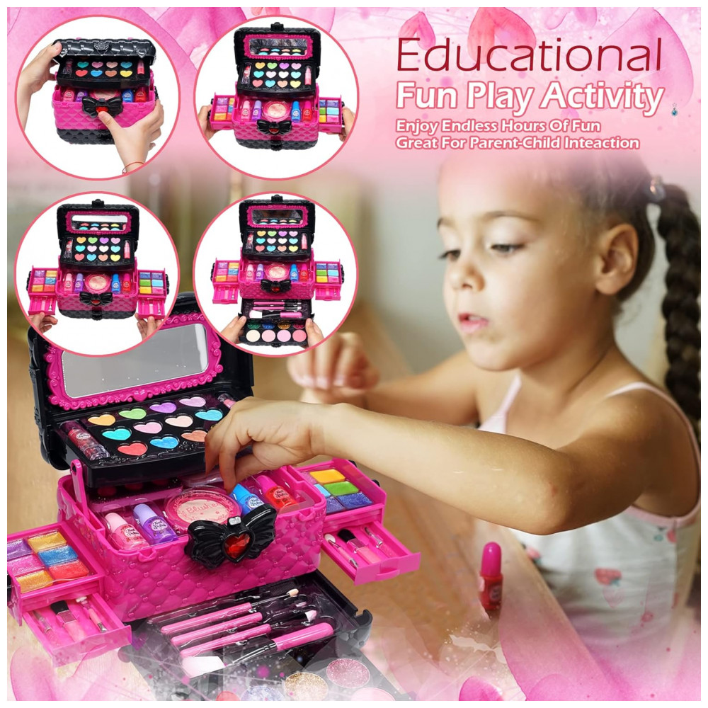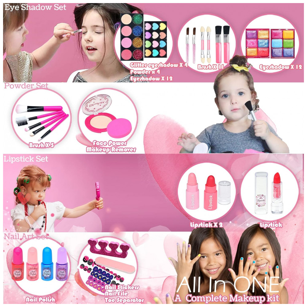 Kit de Maquiagem Infantil com 57 Peças e Cosméticos Não Tóxicos para Crianças de 3 a 12 Anos HERAPFANN Rosa