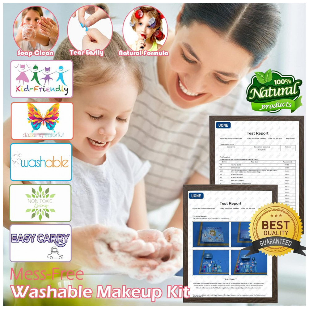 Maquiagem lavável X 100% seguro para crianças: Kit de maquiagem infantil para meninas usa fórmula solúvel em água, sem adição de conservantes, suave e não irritante, sem pesar na pele. torna difícil ser danificado e protege as mãos macias das crianças, fácil de lavar, não tóxico. Atender aos padrões de brinquedos infantis internacionais (certificados CPSIA, CPC, ASTM) presentes de aniversário, presente de Natal, brinquedos de Páscoa, brinquedos para meninas com mais de 5 anos