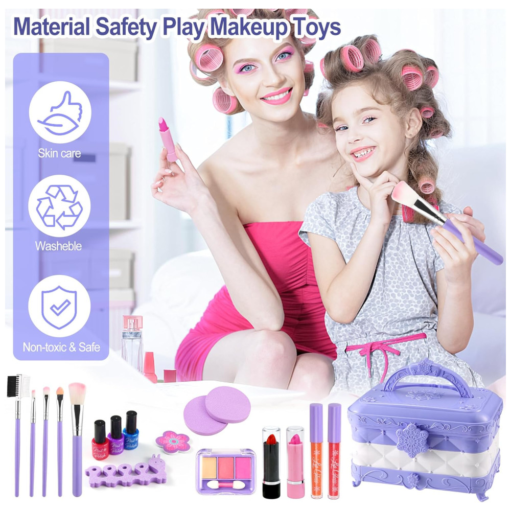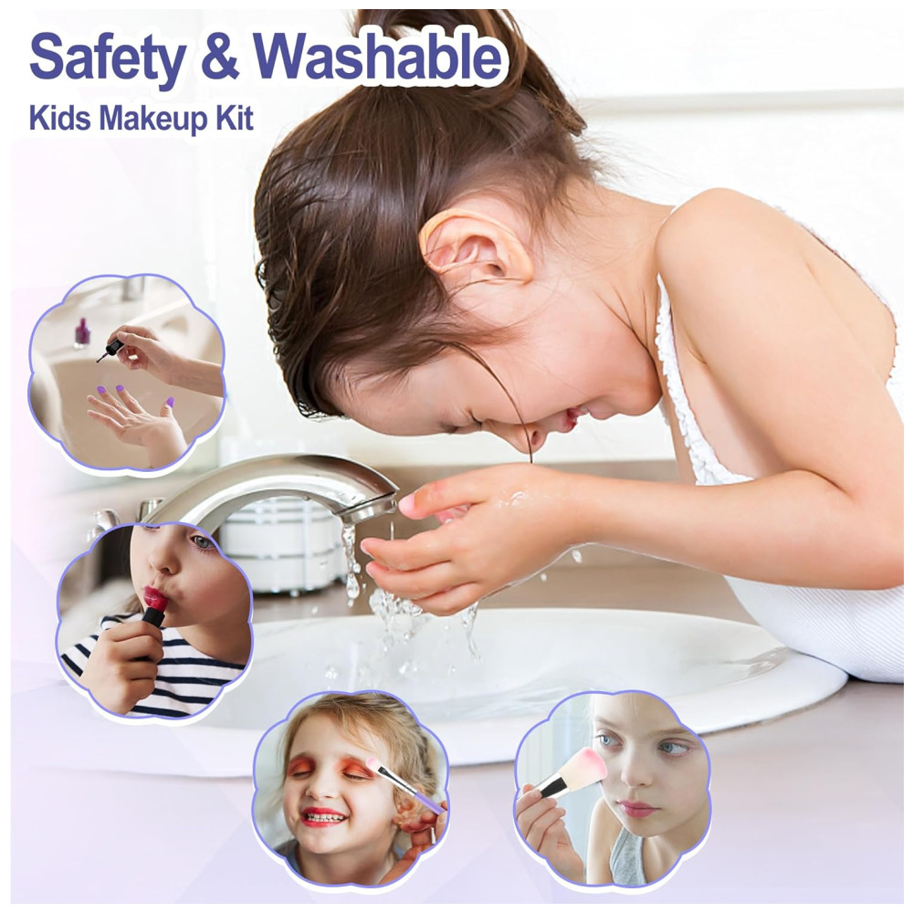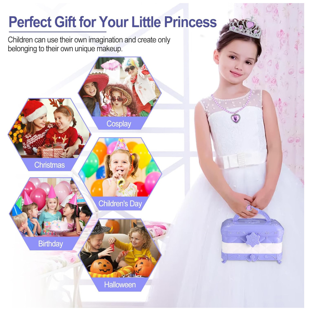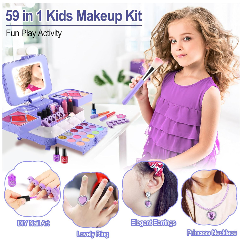 Kit de Maquiagem Infantil com 59 Peças e Espelho Iluminado por LED em 3 Cores para Crianças de 3 a 12 Anos DAUXONE Roxo