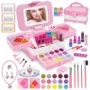 FÁCIL E DIVERTIDO DE APLICAR: Este conjunto permite que as crianças explorem a moda e a beleza com segurança. Ótimo para sua festa do pijama ou para organizar um dia de spa. Este Kit é o conjunto completo de maquiagem cosmética de beleza que sua princesinha merece.
