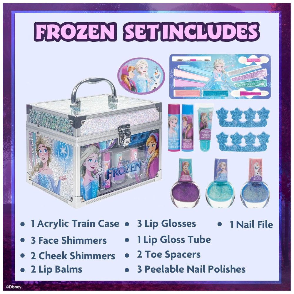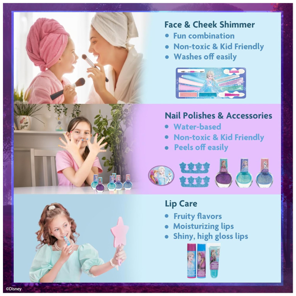 Kit de Maquiagem Infantil com Mais de 10 Peças e Não Tóxico para Crianças de 3 a 10 Anos Townley Girl Frozen Azul e Rosa