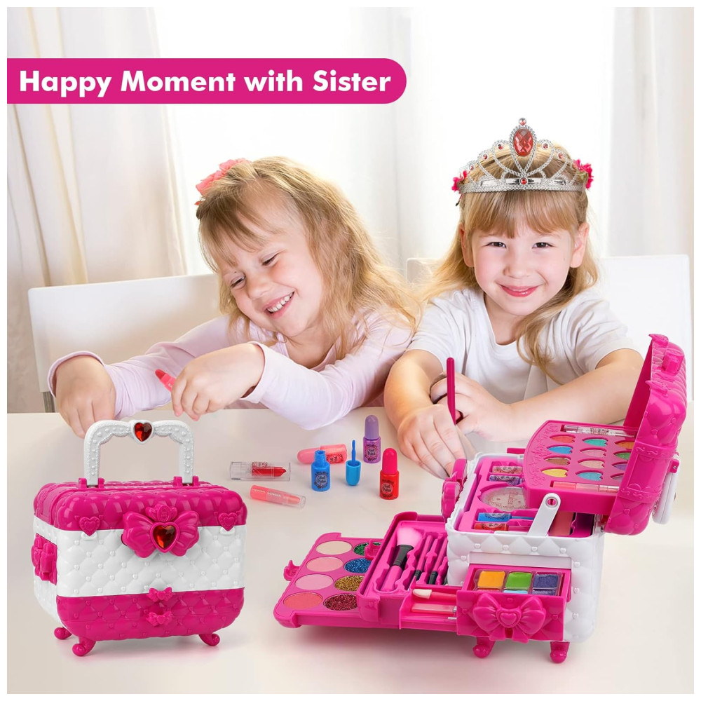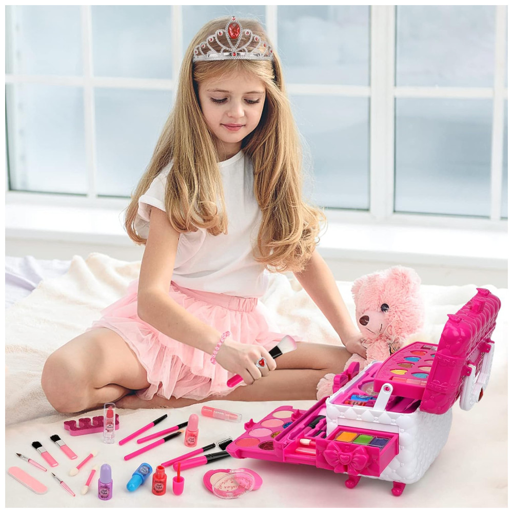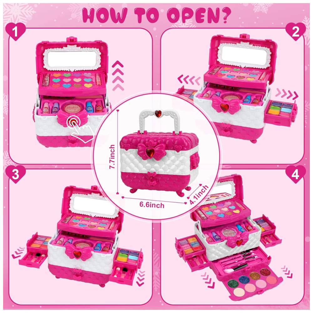 Kit de Maquiagem Infantil Lavável com 60 Peças para Crianças de 3 a 12 Anos Teensymic Princesa Rosa