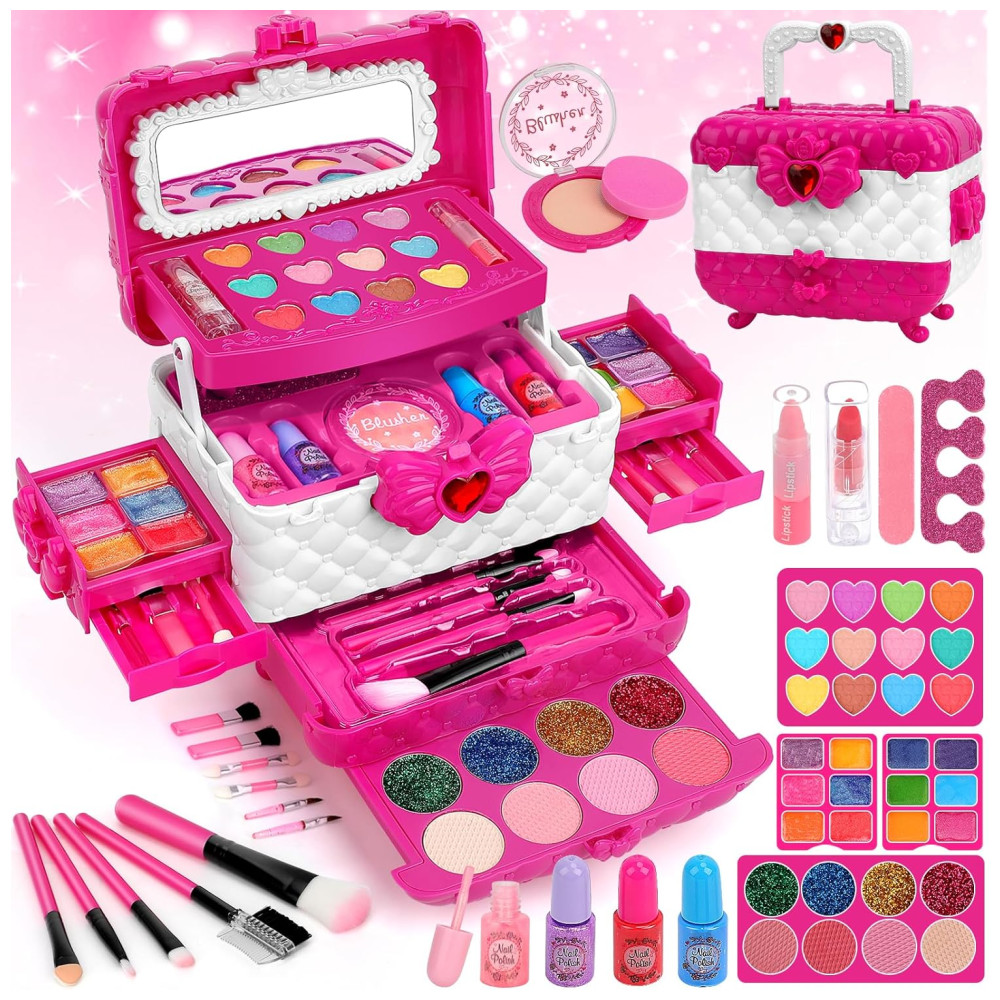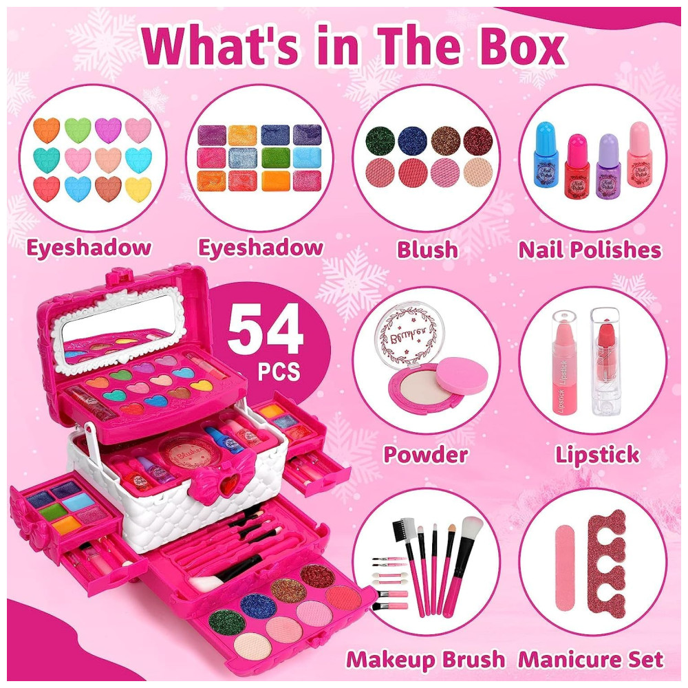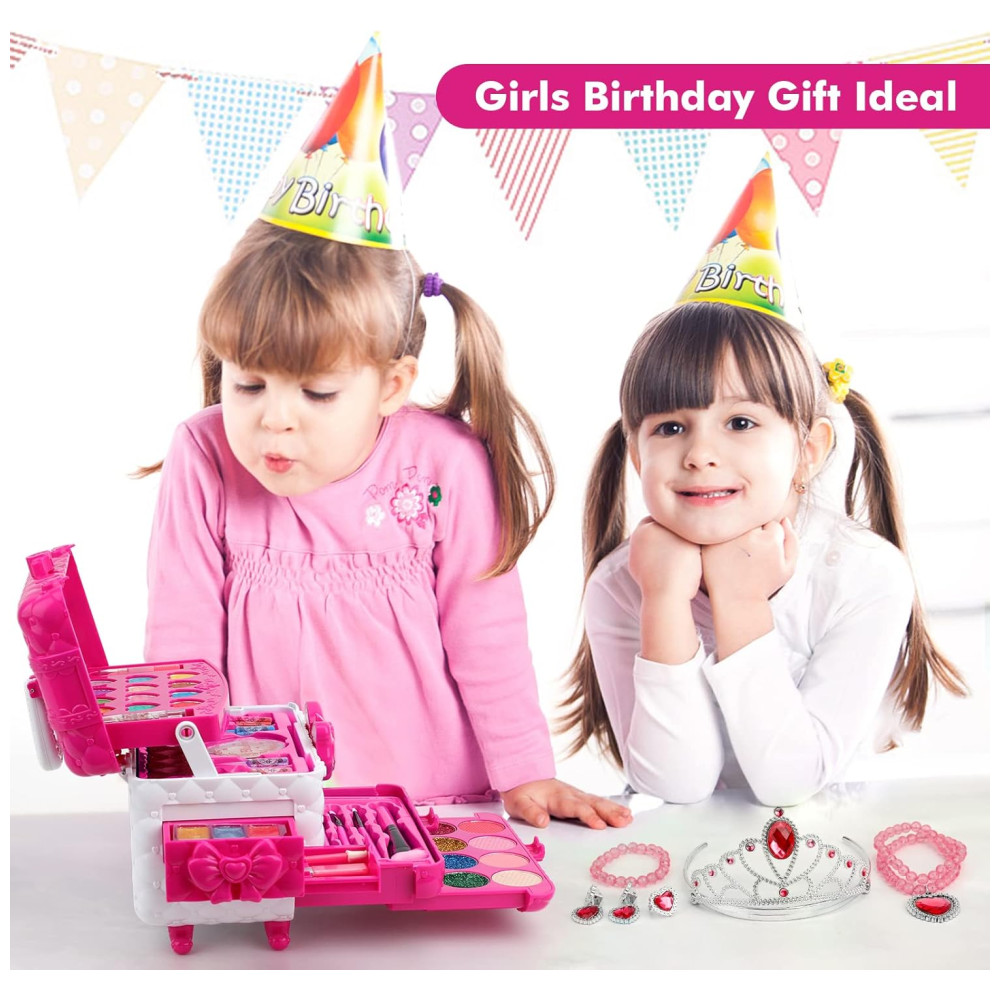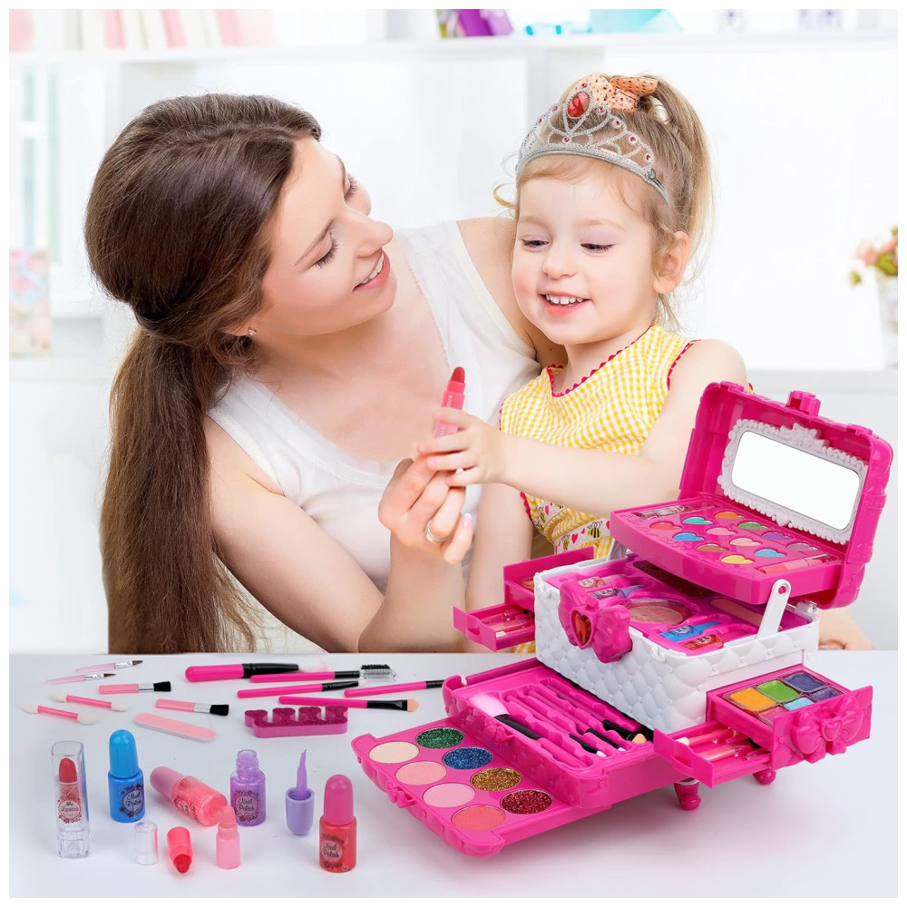 Kit de Maquiagem Infantil Lavável com 60 Peças para Crianças de 3 a 12 Anos Teensymic Princesa Rosa