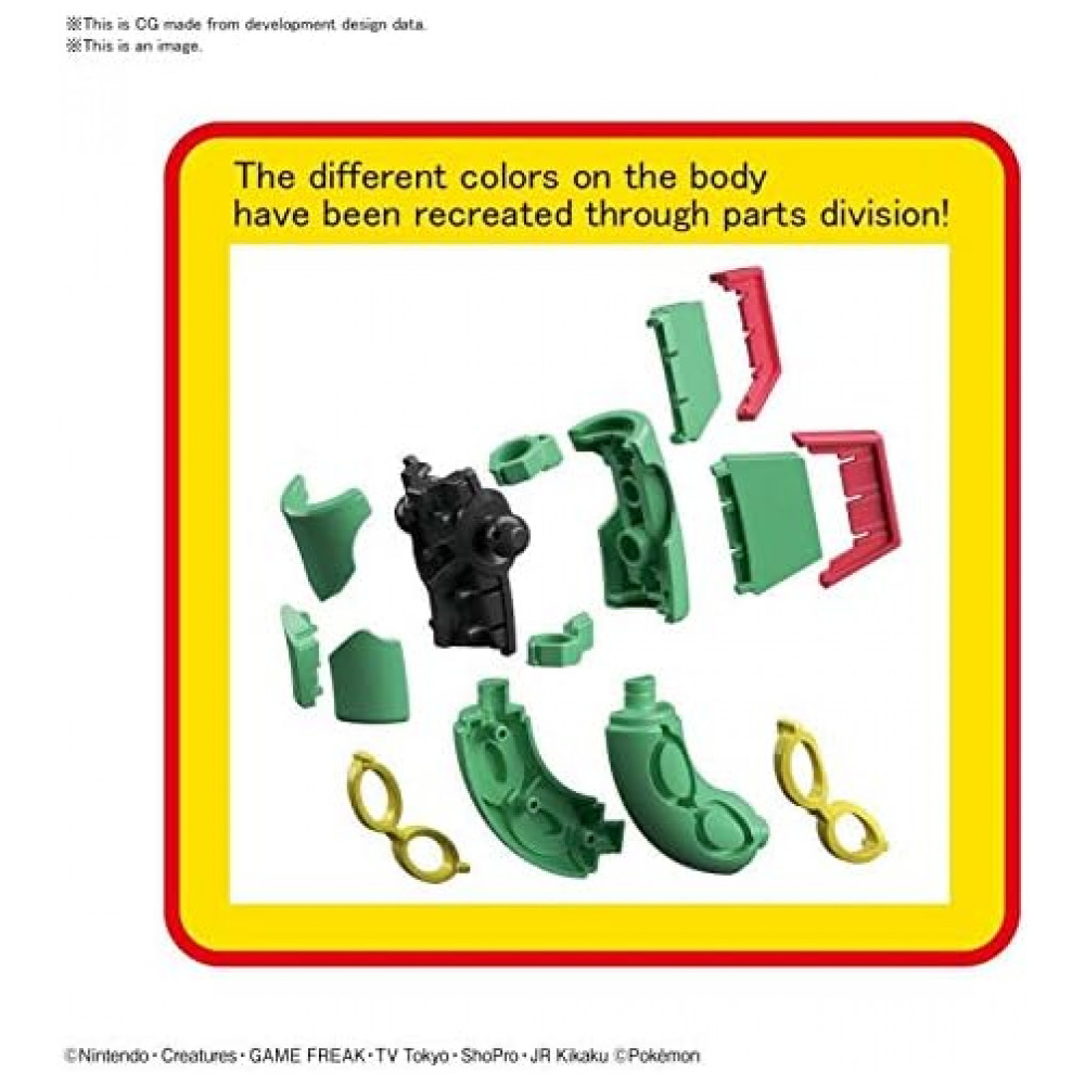 O kit de modelo Pokémon Rayquaza Bandai Spirits é um modelo estático articulado para montagem, projetado para representar o Pokémon lendário Rayquaza com corpo segmentado em formato serpentino. As peças vêm moldadas em plástico colorido, dispensando o uso de cola e pintura, o que facilita a montagem e garante acabamento consistente após a construção.