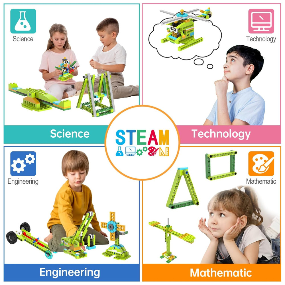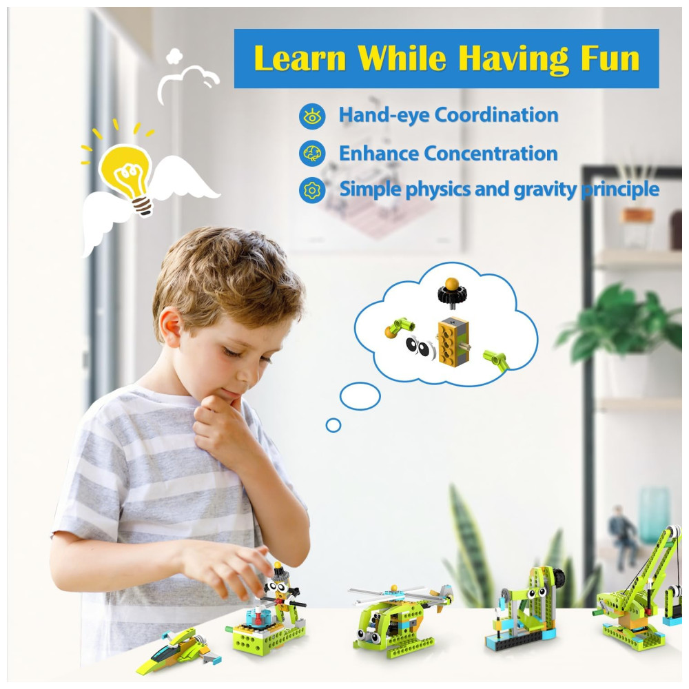 Com mais de 370 peças, o Kit de Robô Makerzoid permite que as crianças construam 100 modelos únicos, como helicópteros, balanços e guindastes. Feito de plástico ABS de alta qualidade e não tóxico, garante segurança. Com instruções detalhadas e um aplicativo com passos de construção em 3D, até crianças menores de 6 anos podem montar os modelos de forma independente. Este kit STEM ajuda as crianças a aprender conceitos de matemática e princípios físicos através da brincadeira prática. Ideal como um brinquedo de construção de robô introdutório, é uma excelente opção de presente para aniversários, formaturas ou férias, garantindo diversão educativa para meninos e meninas.