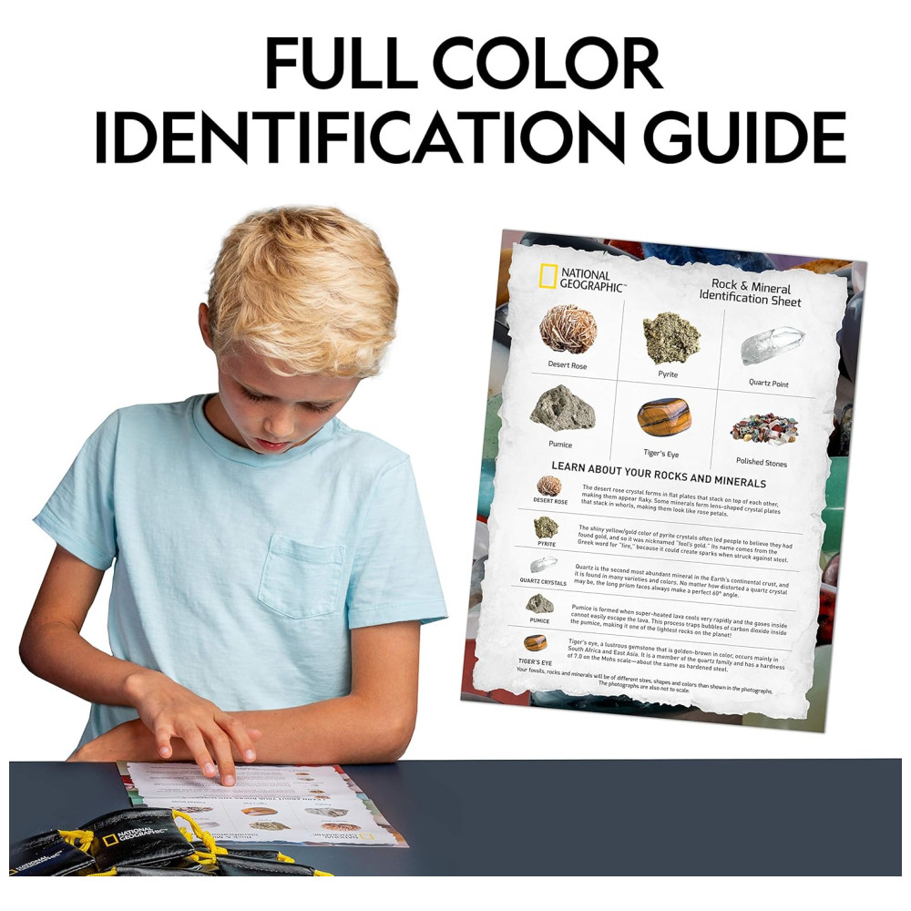 Coleção de Rochas e Minerais Educativa de 125 kg 50 Amostras para Compartilhar Kit de Ciências da Terra STEM Infantil National Geographic – Multicolor