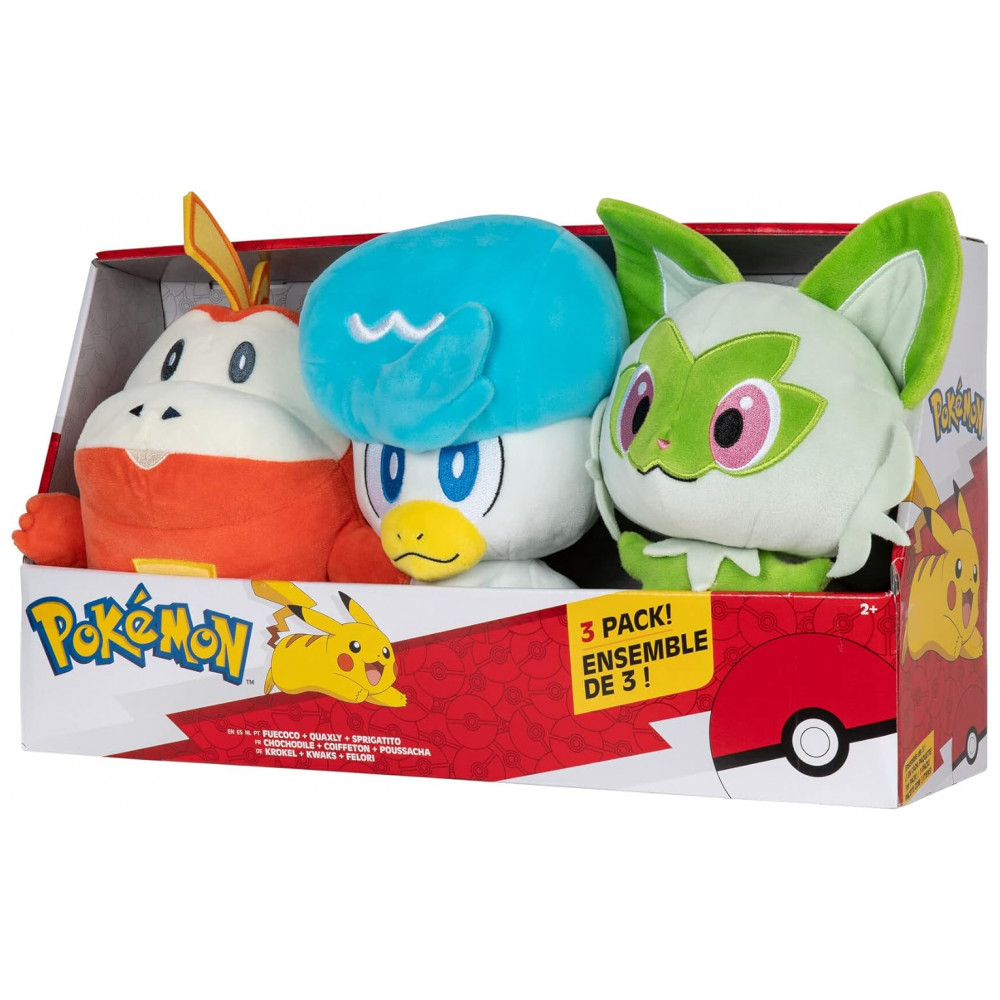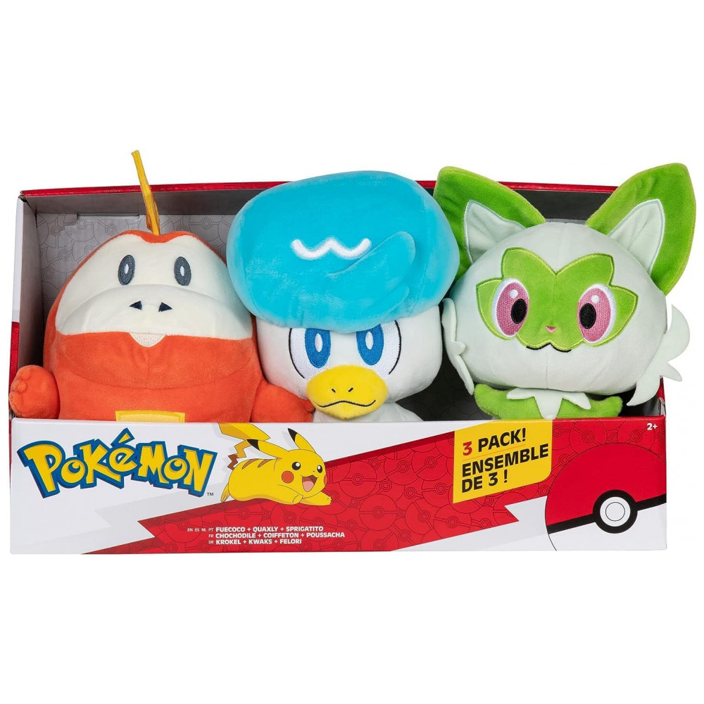 Kit de pelúcias Pokémon Paldea Jazwares Fuecoco Quaxly Sprigatito 3 unidades altura 20cm