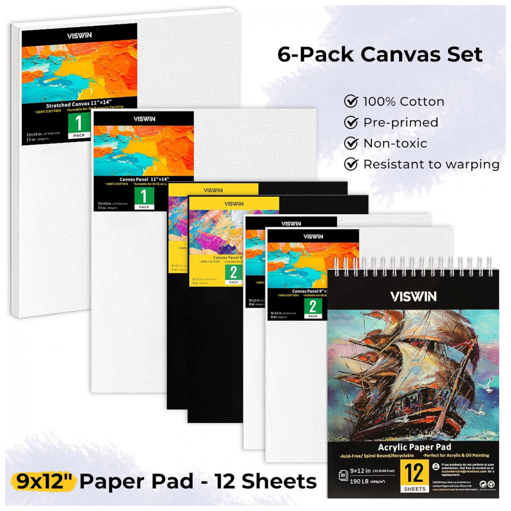 CONJUNTO DE PINTURA TUDO INCLUÍDO Este conjunto de pintura de luxo inclui 78 peças de materiais de arte uma caixa de esboço de mesa de madeira de faia premium, 48 cores de tintas acrílicas, 4 marcadores de acrílico de cores, 2 telas esticadas, 4 painéis de tela branco e preto, 10 pincéis de arte de cabelo de nylon, 20 folhas de bloco de papel de pintura acrílica, uma paleta de plástico de madeira, 6 facas de paleta de plástico e uma roda de cores de mistura. Ele fornece tudo que você precisa para criar