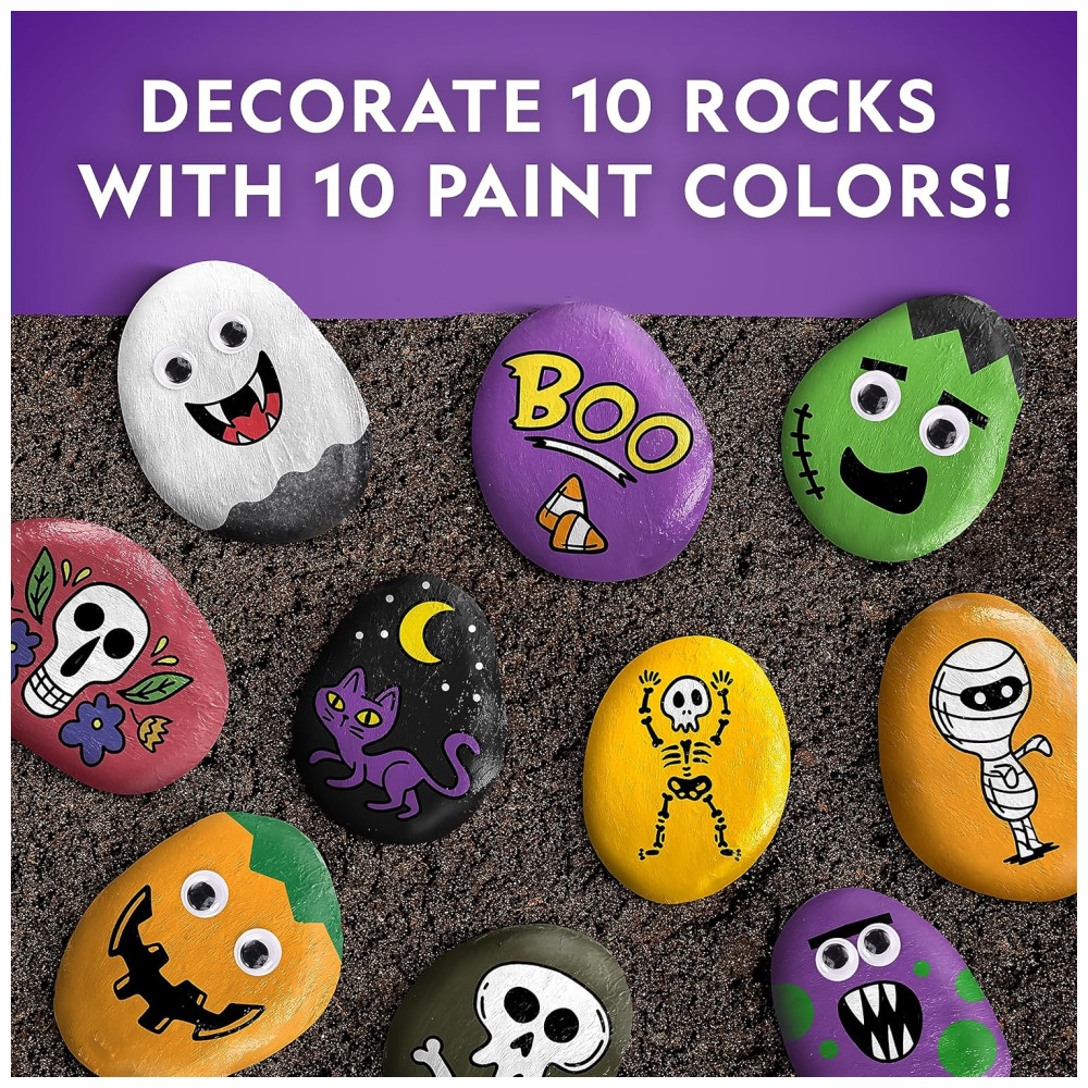 FAÇA CRIATURAS DE ROCHA ASSUSTADORAS Com este kit de pintura rupestre de Halloween, as crianças podem decorar 10 pedras de rio com 10 cores de tinta, 30 olhos arregalados e 2 folhas de decalques de transferência assustadores Crie decorações de Halloween, pedras para histórias e muito mais
