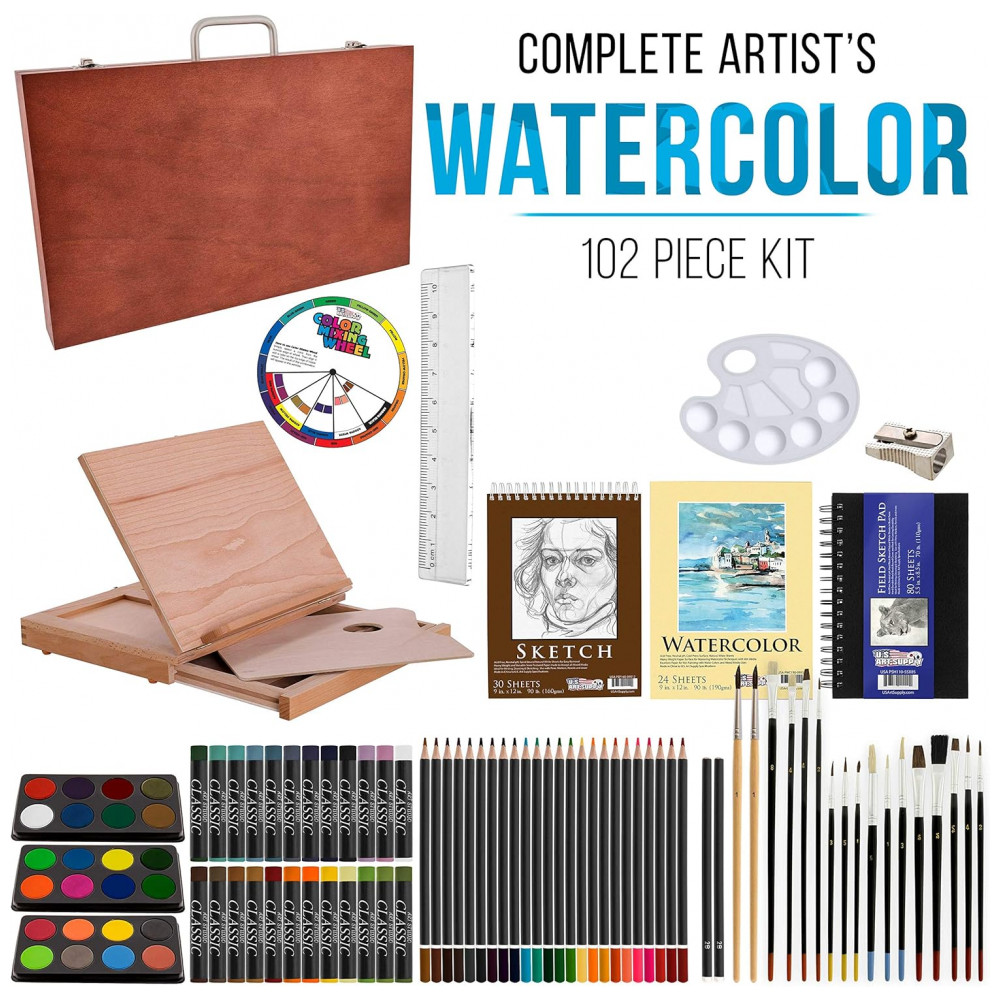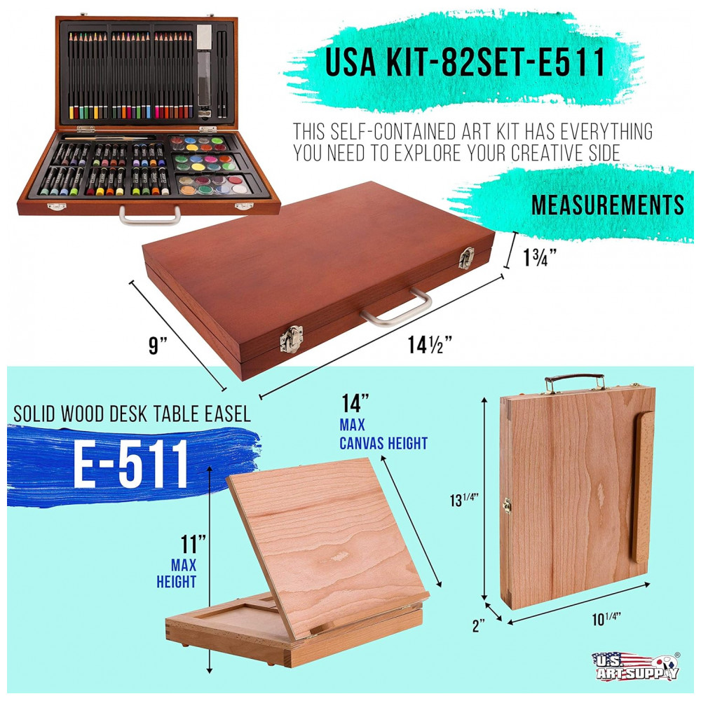 Kit de Pintura U.S. Art Supply com 103 Peças e Caixa de madeira Portátil Marrom