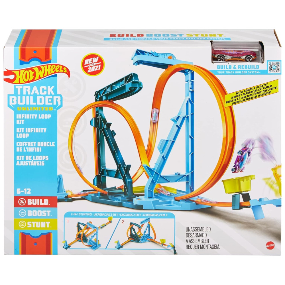 O kit Hot Wheels Track Builder Unlimited Infinity Loop é um conjunto emocionante para crianças de 6 a 12 anos que inclui um veículo Hot Wheels escala 1:64. Com o lançador de suporte, os carros são enviados em alta velocidade para o loop infinito e para uma pista de saída com um salto que lança os veículos para o coletor de captura. As crianças podem ajustar o loop para criar duas configurações emocionantes e desafiadoras que permitem saltos para frente ou para trás desde o salto, aumentando os níveis de dificuldade. O kit de loop também se conecta a outros conjuntos Hot Wheels Track Builder vendidos separadamente. Com horas de diversão garantida, as crianças podem desenvolver sua pista para maior emoção e exibir suas técnicas de corrida.