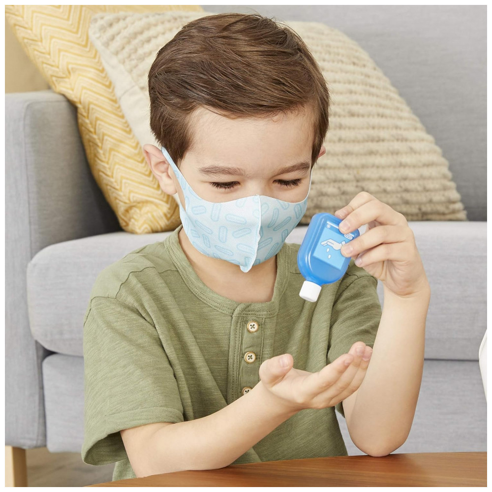 ROLE PLAYING REALISTA As compressas de gaze e bandagens são perfeitas para crianças que querem fingir tratar cortes e arranhões. As crianças podem imaginar que estão tratando um braço quebrado com a tipoia de braço incluída. O desinfetante para as mãos e a máscara facial são uma ótima maneira de as crianças aprenderem sobre prevenção de doenças e praticarem suas habilidades sociais