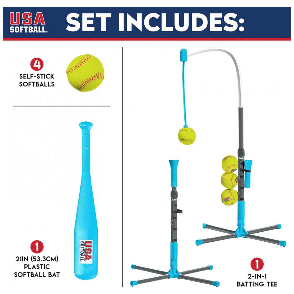TUDO INCLUÍDO Este conjunto vem completo com a camiseta de rebatidas Cresça Comigo, um 1 bastão de plástico de 53 centímetros e quatro 4 bolas de beisebol com capas aderentes, fornecendo tudo o que você precisa para jogar.