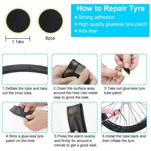 Kit de remendo de bicicleta conveniente e confiável O remendo de pneu pré colado pode reparar o pneu furado sem qualquer cola adicional. Basta aplicar a lima na parte áspera do pneu e depois colar o remendo firmemente no pneu