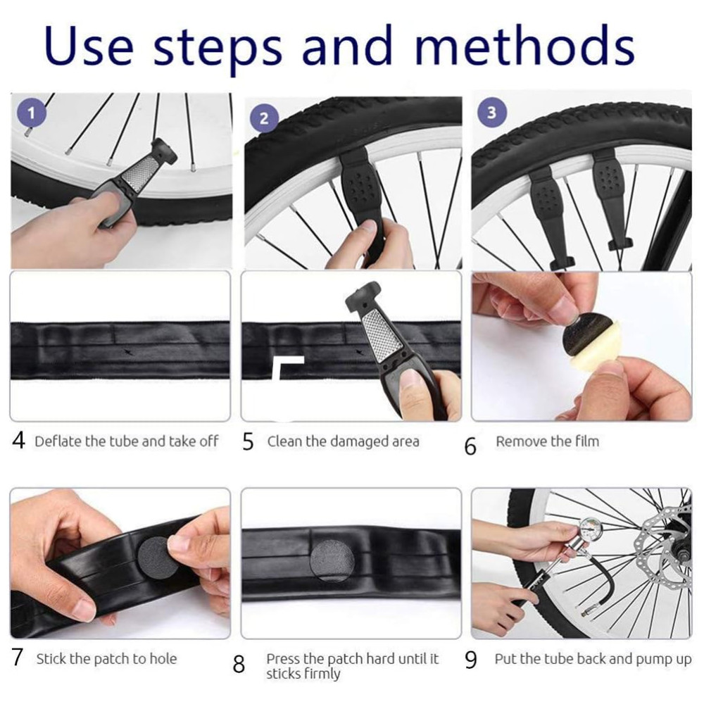 Kit de Reparo Emergencial de Bicicleta com Mini Bomba 120 PSI e Bolsa de Transporte 16 Peças YBEKI Preto