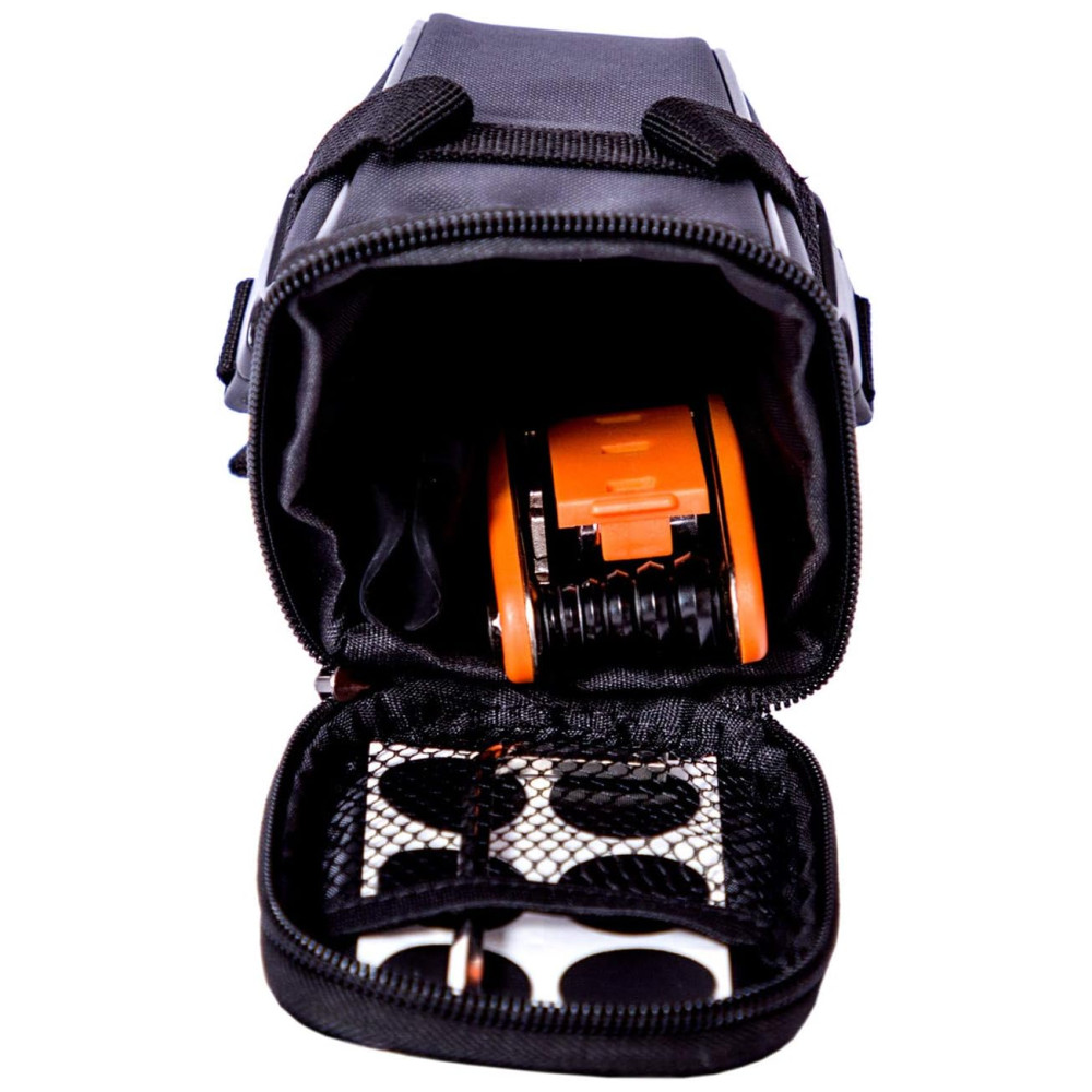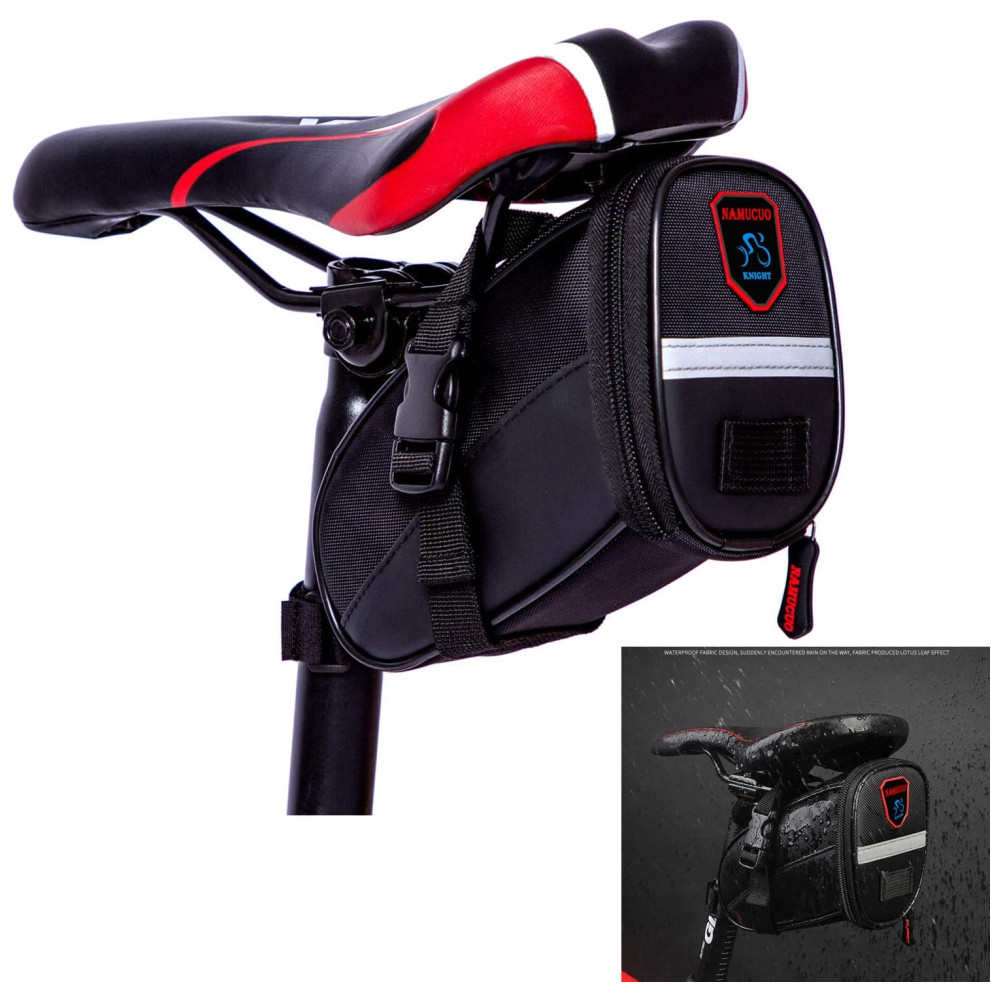 BOLSA DE SELIM PORTÁTIL DEDICADA. A bolsa de cauda do assento em forma de cunha aerodinâmica com bolso principal interno e bolso de malha auxiliar, pode encher as ferramentas e pequenos itens como chaves. Sistema de montagem de liberação rápida da bolsa do assento que permite montagem e remoção rápida e fácil sem ferramentas. É compacto e fácil de transportar, e tem uma função à prova dágua.