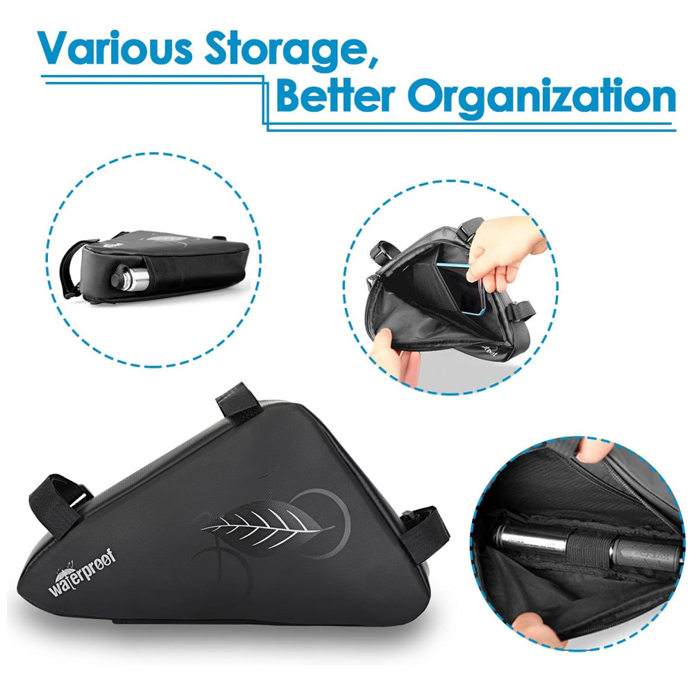 Bolsa de ção grande à prova dágua A bolsa de triângulo de bicicleta adotou poliéster 600D com revestimento de PU, que é resistente à água e às intempéries e fácil de limpar.
