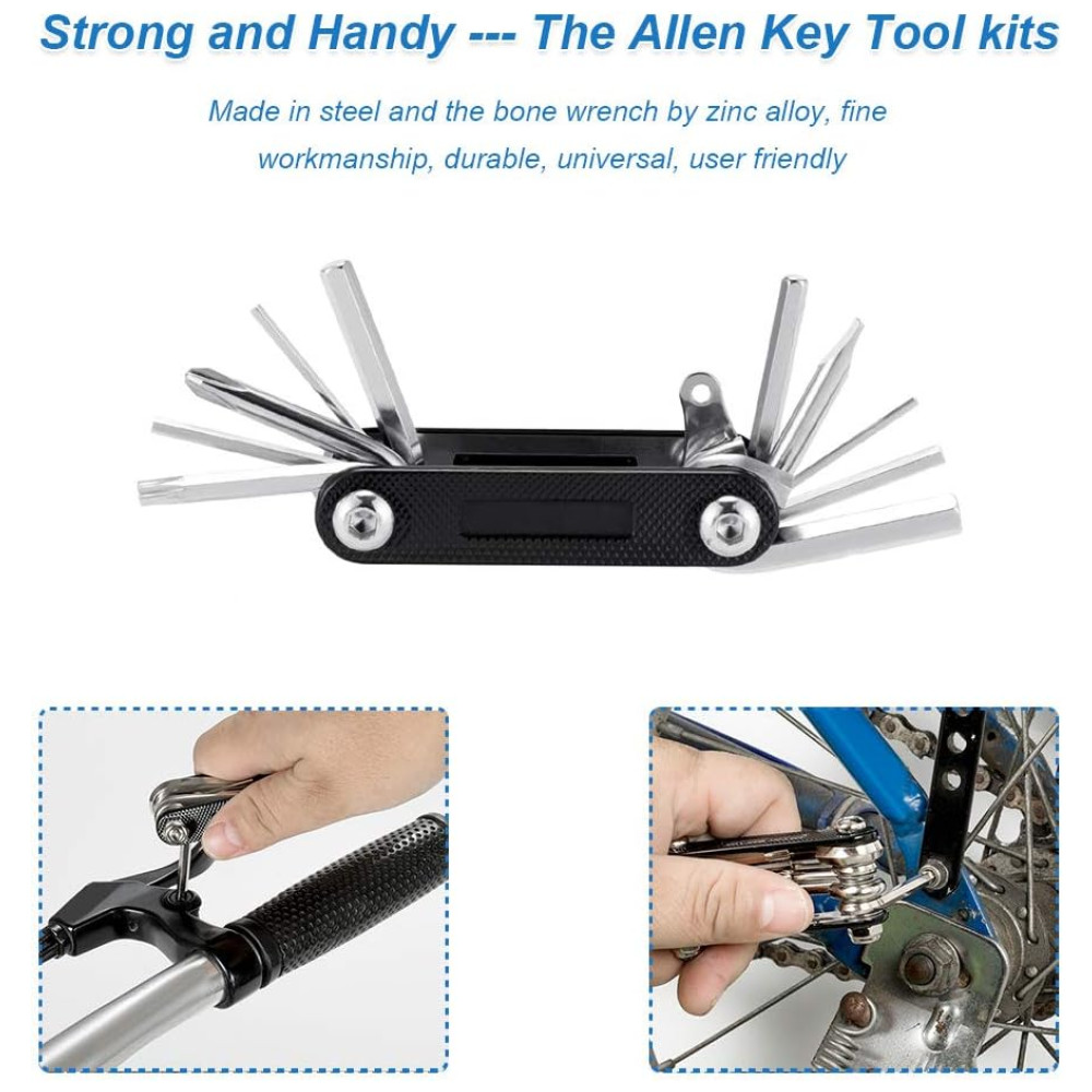 Ferramenta de reparo multifuncional 11 em 1 A ferramenta de reparo de bicicleta multifuncional dobrável WOTOW é feita de aço inoxidável de alta qualidade, resistente e durável, inclui chave Allen de 1,5, 2, 2,5, 3, 4, 5, , slot e Chave de fenda cruzada, T25 Torx, gancho de chave. O tamanho mini e compacto facilitam o uso e o transporte