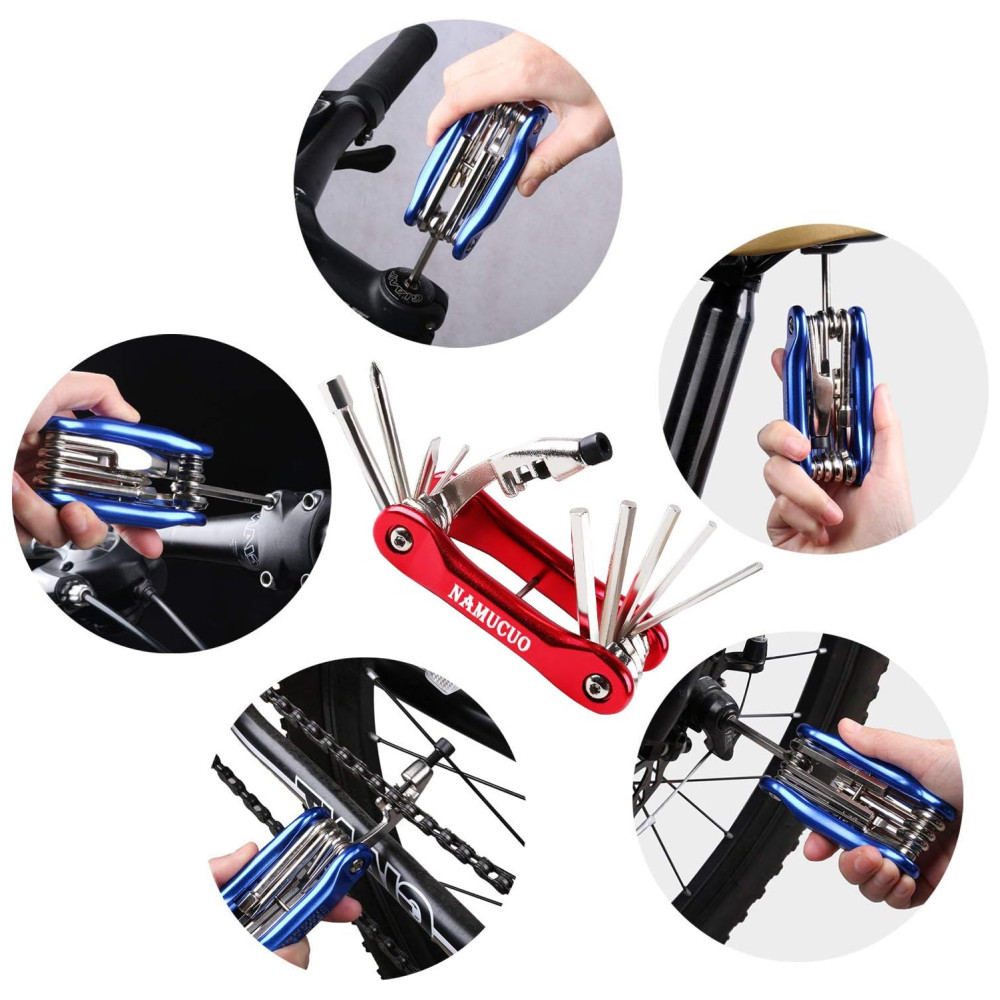 Kit de Reparo Emergencial de Bicicleta e Bolsa de Transporte 13 Funções YBEKI Vermelho