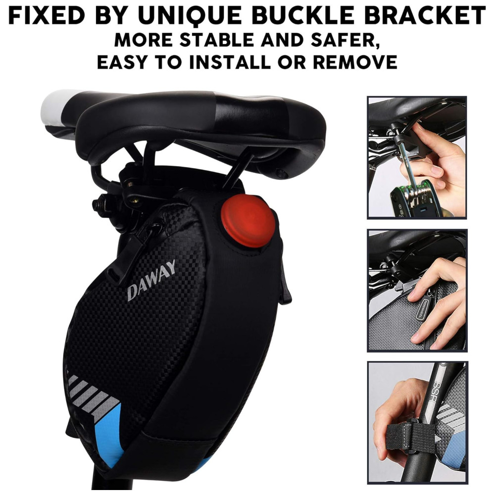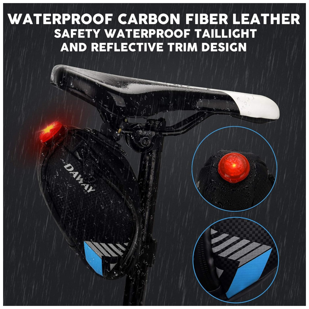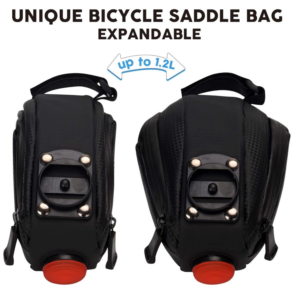 BOLSA DE SELIM DE BICICLETA ÚNICA, EXPANSÍVEL, IMPERMEÁVEL, RESISTENTE A RASGOS A capacidade da bolsa de assento de bicicleta pode até 1,2 L, pode encher as ferramentas de manutenção e outros pequenos itens que você deseja facilmente. Além disso, a bolsa de bicicleta é feita de superfície de couro de fibra de carbono à prova dágua e zíper à prova dágua, fácil de limpar. Não se preocupe com chuva ou ficar sujo