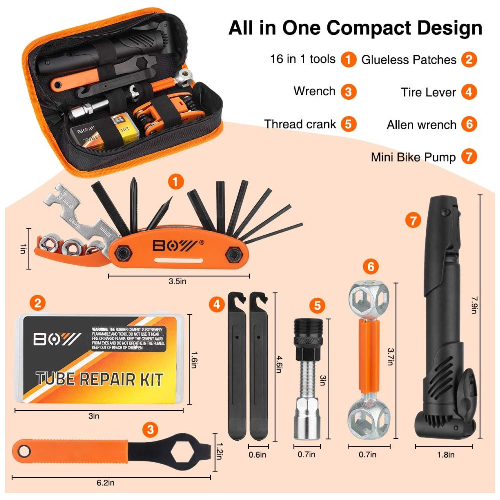 Kit de reparo de bicicleta com bomba e bolsa, kit de ferramentas de reparo de tubo de bicicleta, todos os acessórios melhores do que outros produtos similares em comparação com a função de reparo ou a qualidade dos acessórios
