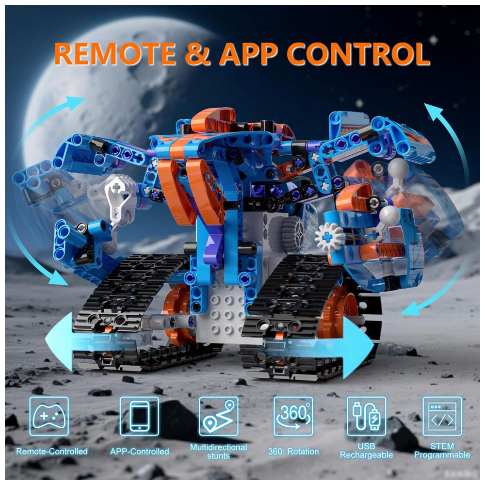 Kit de robô STEM 5 em 1 GLSQWZXD com controle remoto e app 337 peças azul e preto