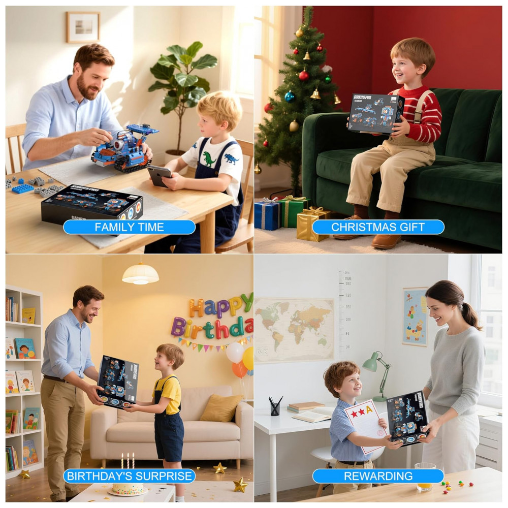Ao construir os modelos, a criança exercita raciocínio lógico, planejamento de etapas e resolução de problemas ao identificar, separar e conectar as peças corretas. O uso do controle remoto e do aplicativo favorece a compreensão de causa e efeito, além de desenvolver coordenação mão-olho, atenção concentrada e colaboração quando a atividade é realizada em dupla ou grupo. A programação por ícones no app introduz noções iniciais de pensamento computacional, como sequência de comandos e teste de resultados.