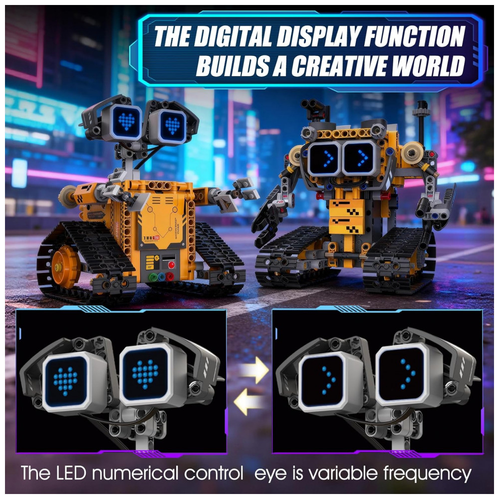 O kit de robô STEM 5 em 1 Sciencow é um conjunto modular que permite montar diferentes configurações de robôs sobre esteiras, com braços e articulações ajustáveis para criar múltiplos formatos de veículo robótico. O sistema inclui blocos de construção, peças especiais, rodas com trilhos e adesivos decorativos, oferecendo uma experiência de montagem completa e visualmente detalhada. A estrutura foi pensada para que a criança explore variações de chassi, base móvel e conjunto de braços, favorecendo ajustes mecânicos e reconfiguração do robô sempre que desejar.