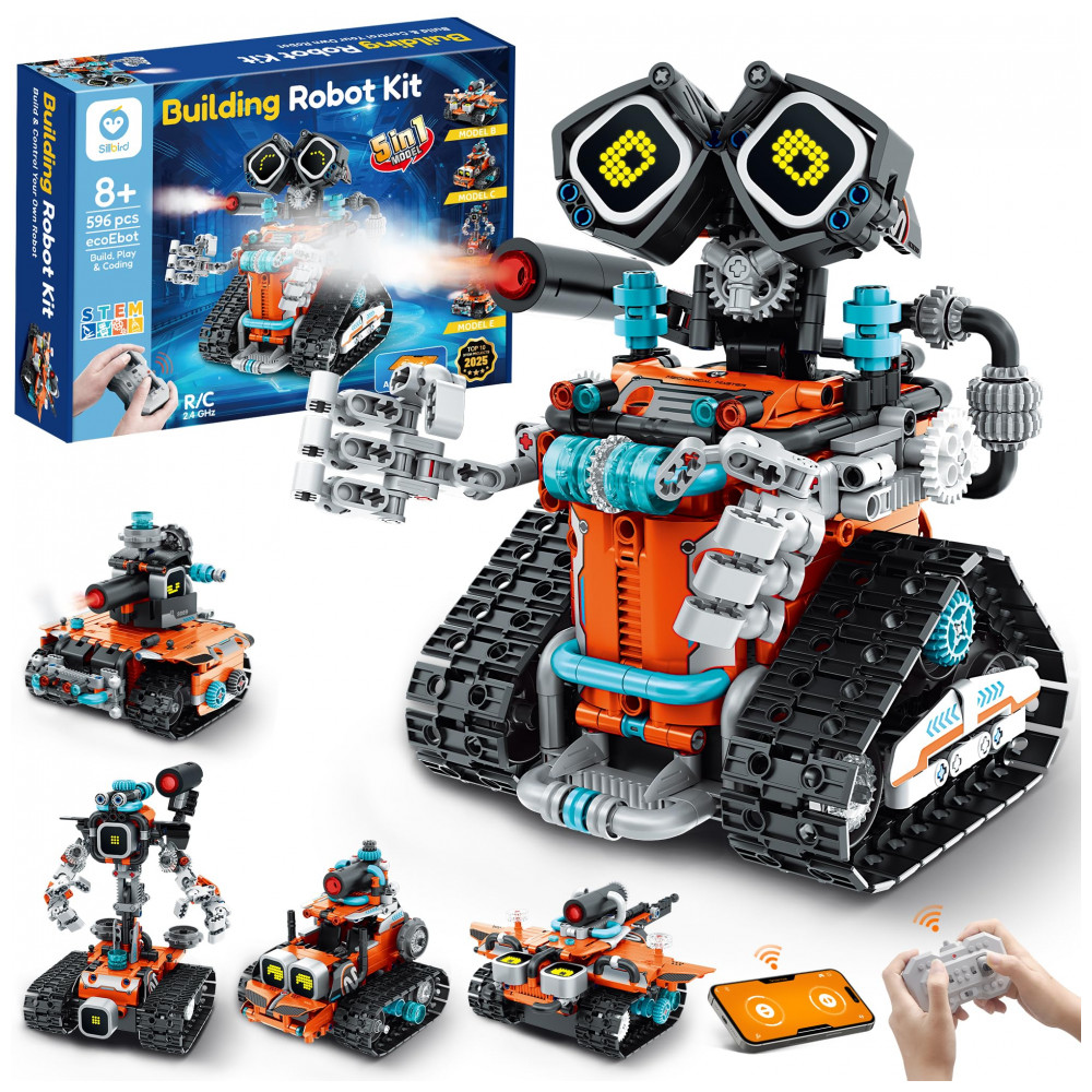 Kit de robô STEM Sillbird 5 em 1 596 peças com controle remoto CA-B902 para Crianças a partir de 8 Anos – Brinquedo Educativo Programável