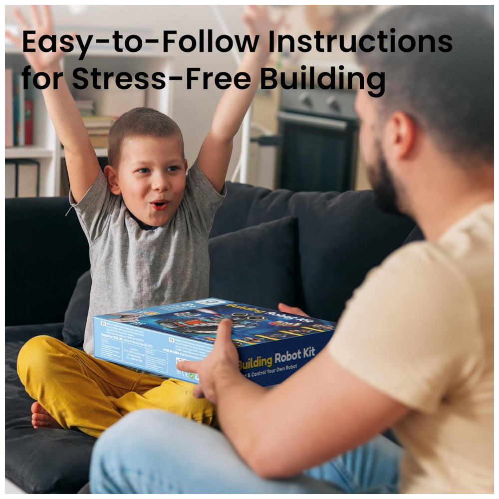 O kit inclui manual de montagem ilustrado com instruções passo a passo em cores, facilitando a construção dos cinco modelos propostos, como robô sobre esteiras, veículo tipo carro e tanque. A proposta educacional abrange uso individual ou em família, reforçando leitura de instruções, planejamento de etapas e noções de robótica voltadas ao público infantil. As peças são produzidas em plástico não tóxico, com encaixes projetados para múltiplas montagens e desmontagens ao longo do tempo.
