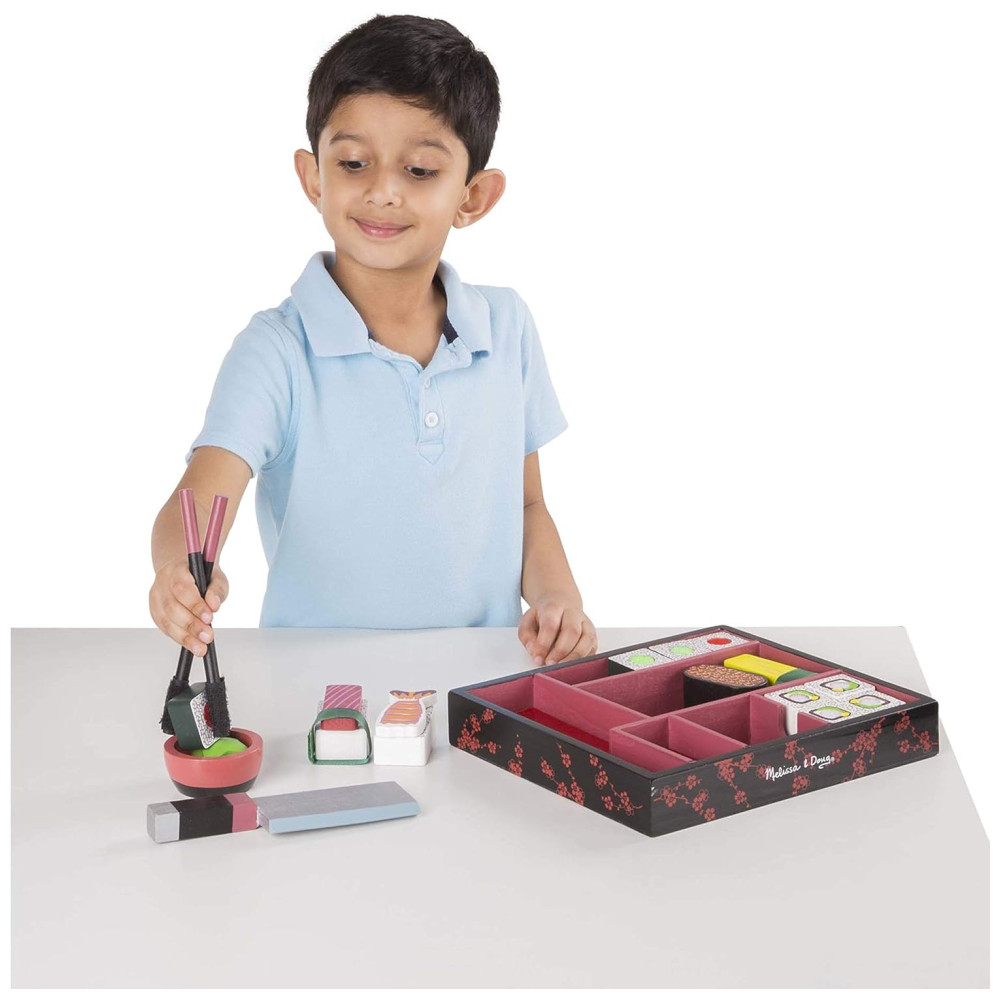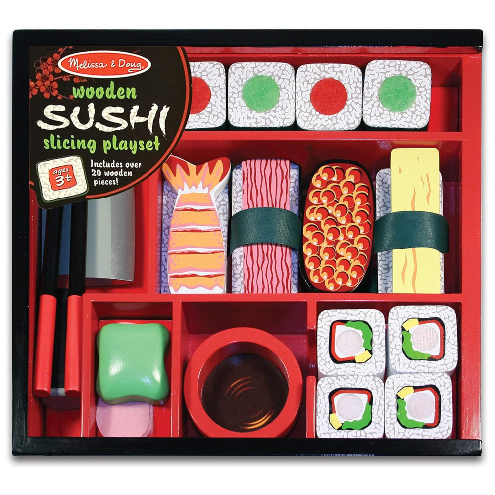 Kit de Sushi de Madeira para Brincar de Cozinha com 24 Peças para Crianças Acima de 3 Anos Melissa & Doug