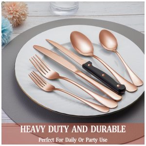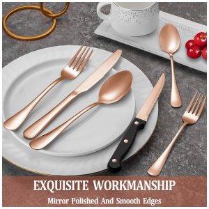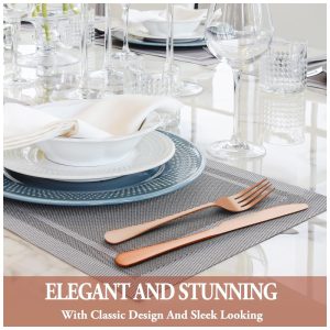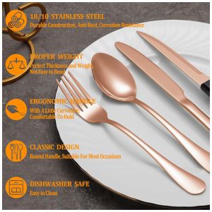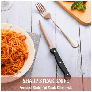 Kit de Talheres Rose Gold com 24 Peças com Facas de Jantar para Churrasco para 4 Pessoas – Aço Inox Premium – Design EleganteMUTNITT