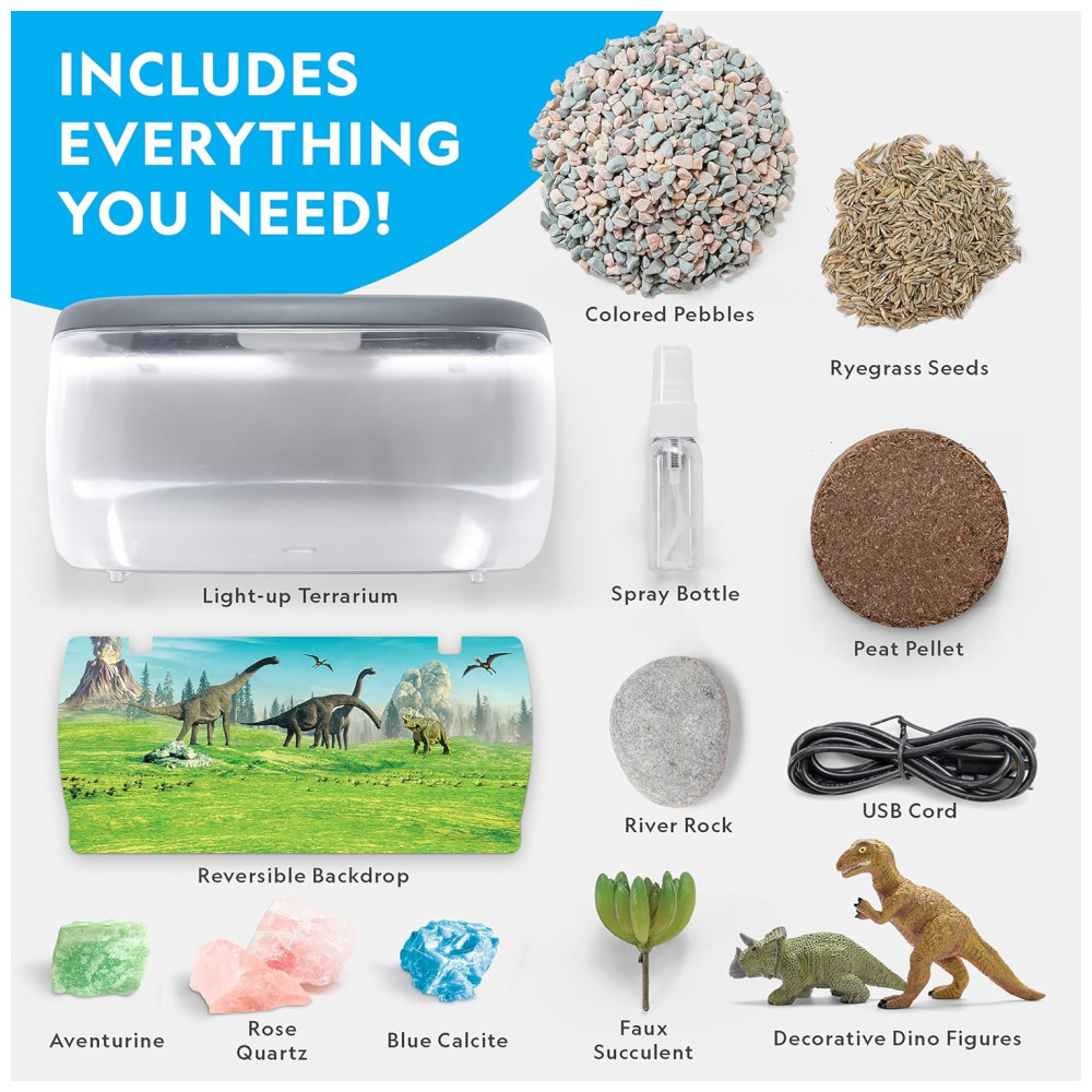 Kit de Terrário Iluminado National Geographic Para Crianças – Construa um Habitat de Dinossauro Com Plantas Reais e Pedras Preciosas