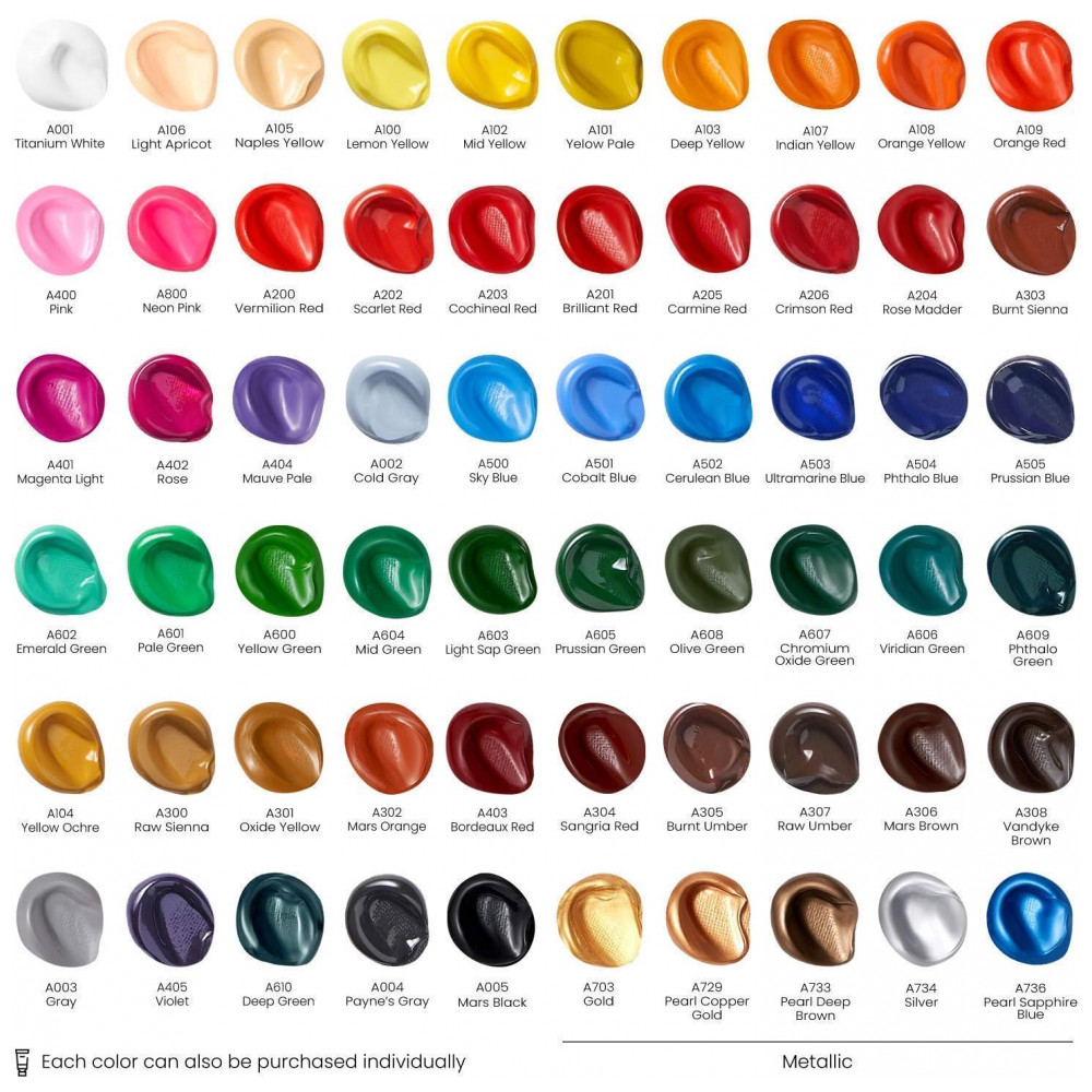 Seleção emocionante de cores de qualidade artística seja você na pintura acrílica ou um artista experiente, cores como Amarelo Limão, Azul Phthalo e Vermelho Carmesim irão incendiar sua imaginação.