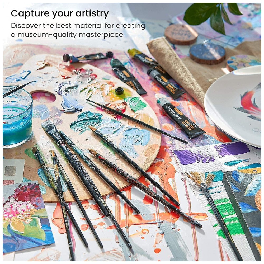 Conjunto de 12 pincéis de óleo e acrílico premium nossos pincéis de acrílico Arteza são projetados com durabilidade em mente. Cada pincel no conjunto tem cabelo sintético da mais alta qualidade, virolas de latão e alças de bétula duráveis.