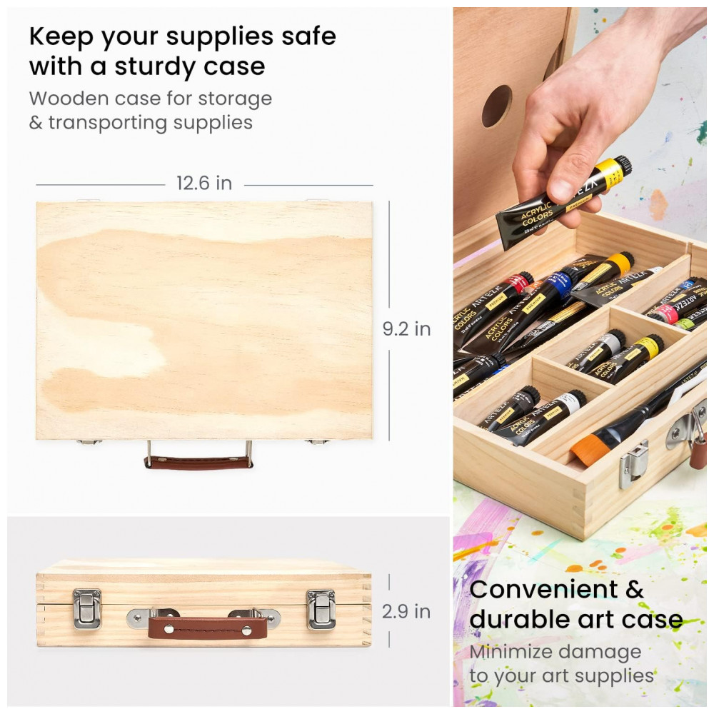 Kit de Tinta Acrílica Profissional com Maleta de Madeira 35 Peças ARTEZA