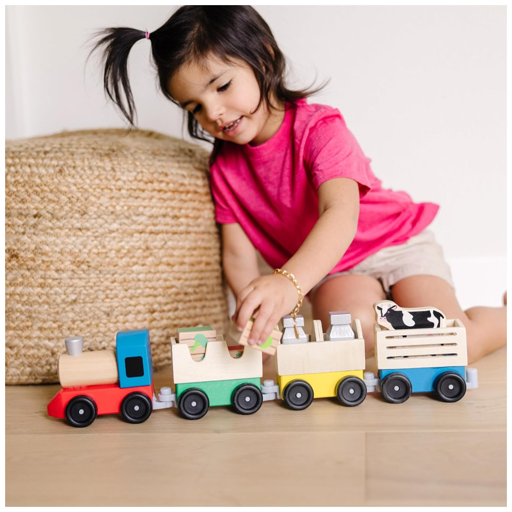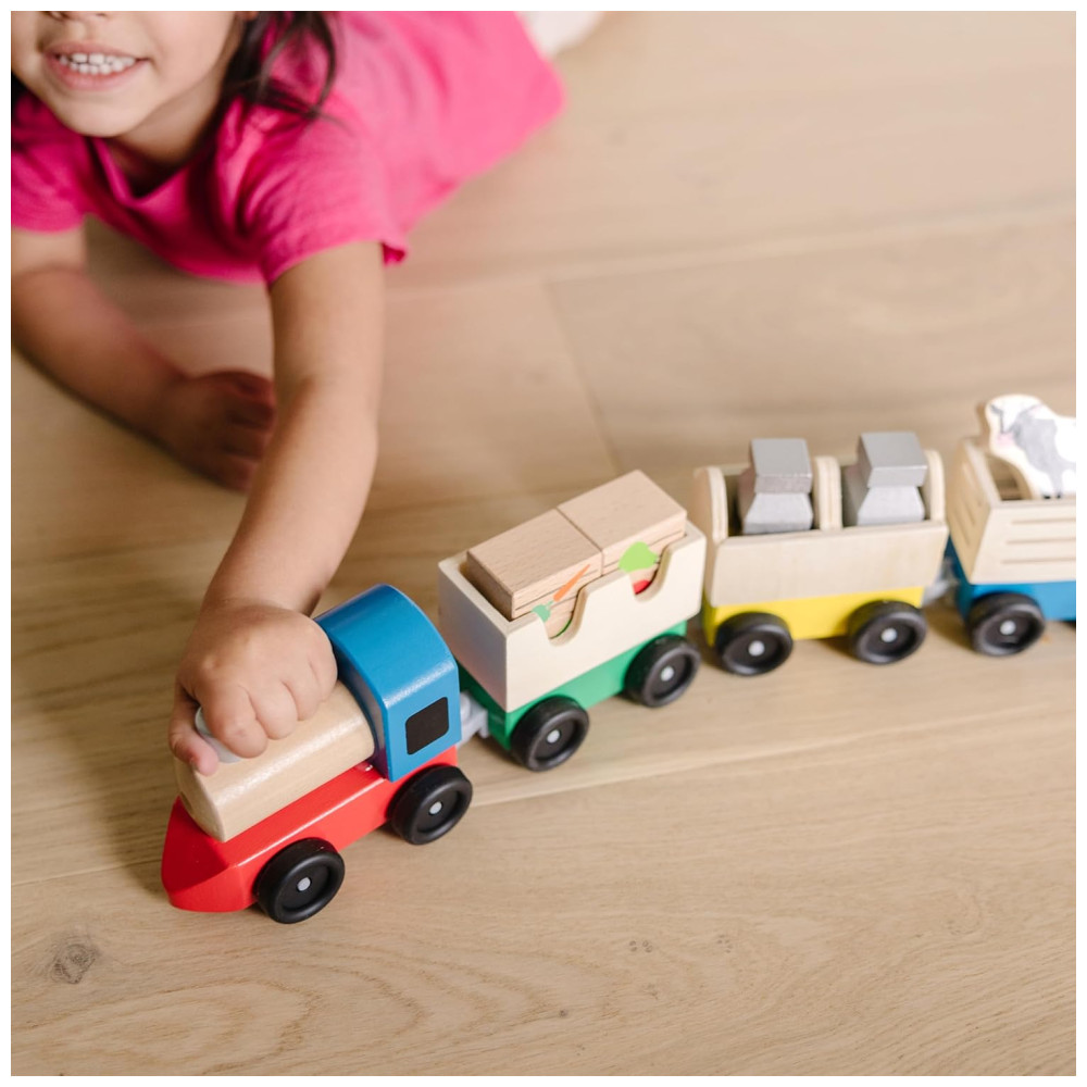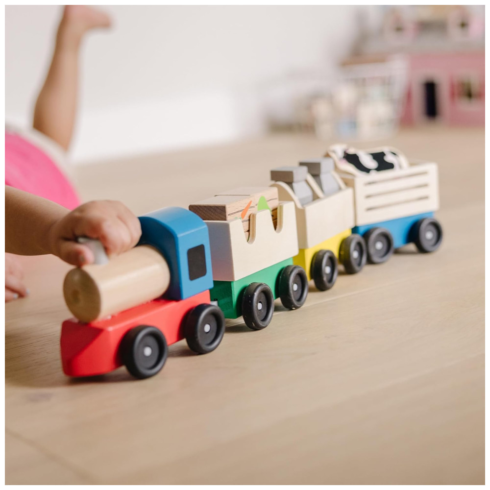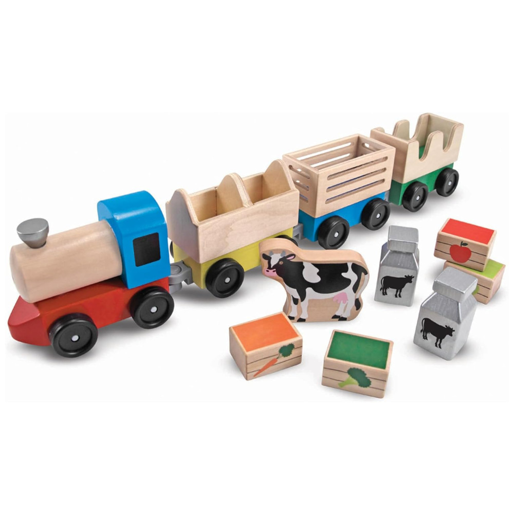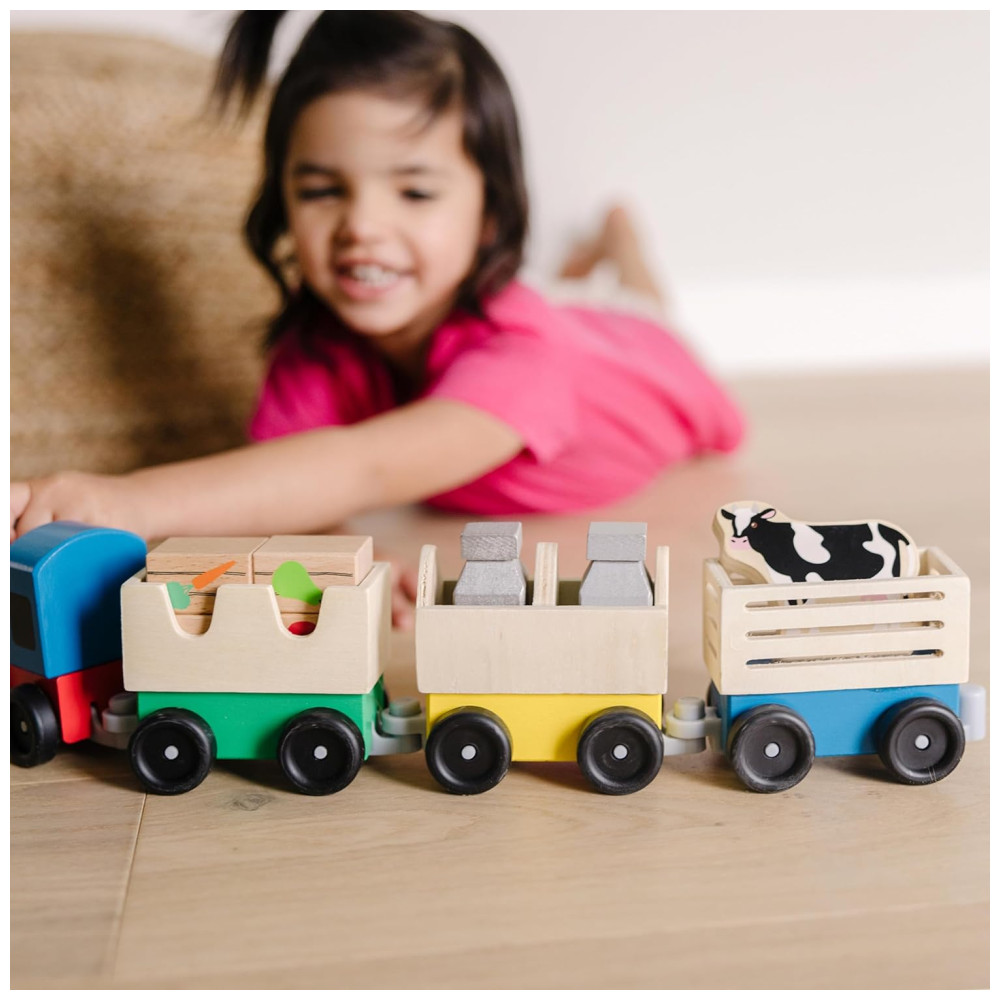 Kit de Trem de Fazenda Infantil de Madeira com 3 Vagões Interligados para Crianças Acima de 3 Anos Melissa & Doug