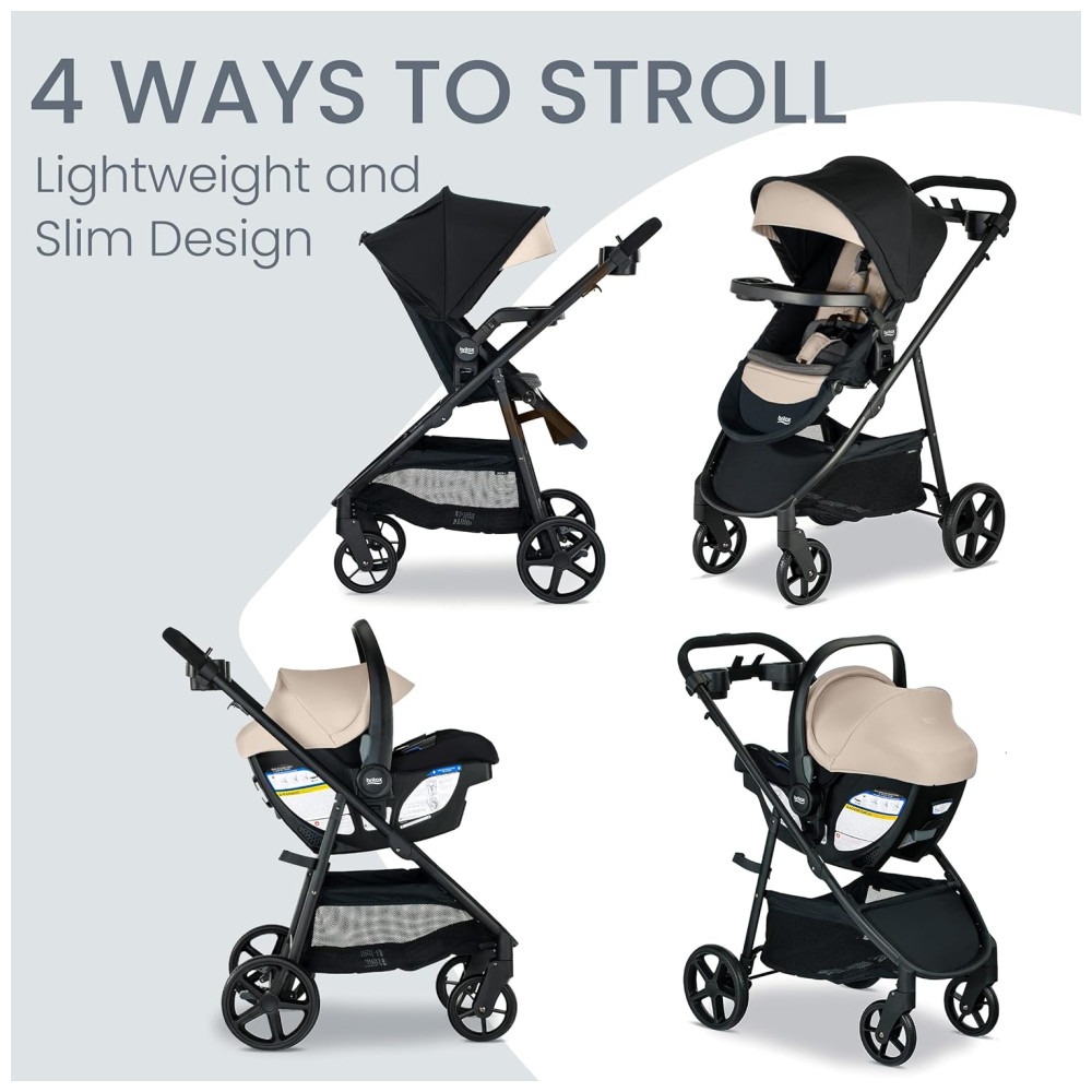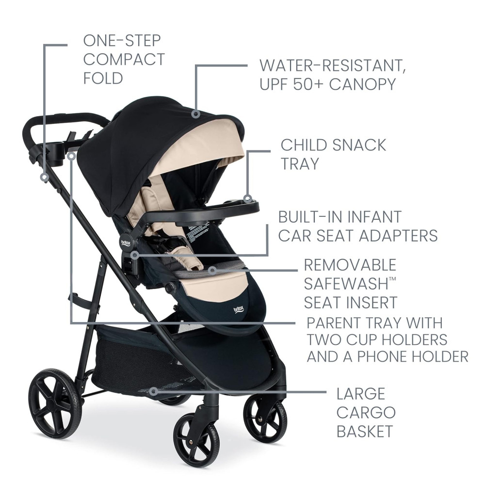 Kit de Viagem para Bebê Britax Willow Brook S Cadeirinha e Carrinho com Base Alpine ClickTight Capa e Forro SafeWash Preto e Bege