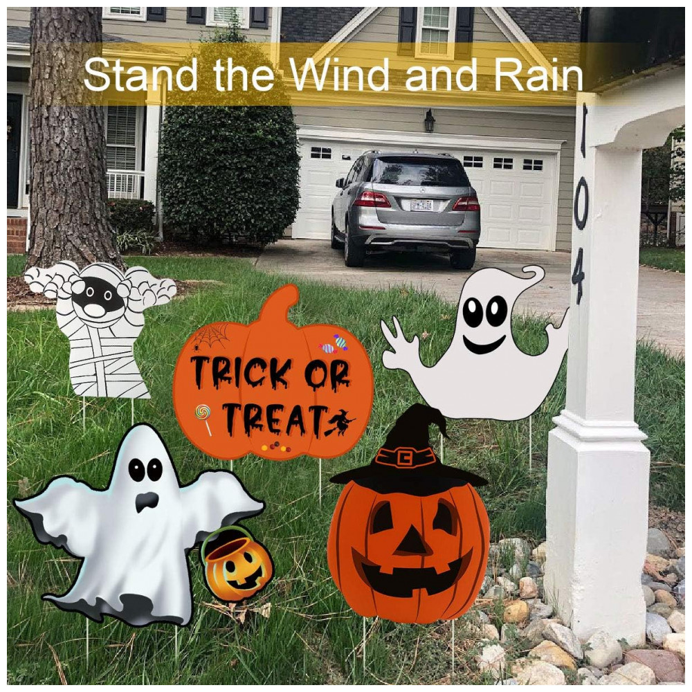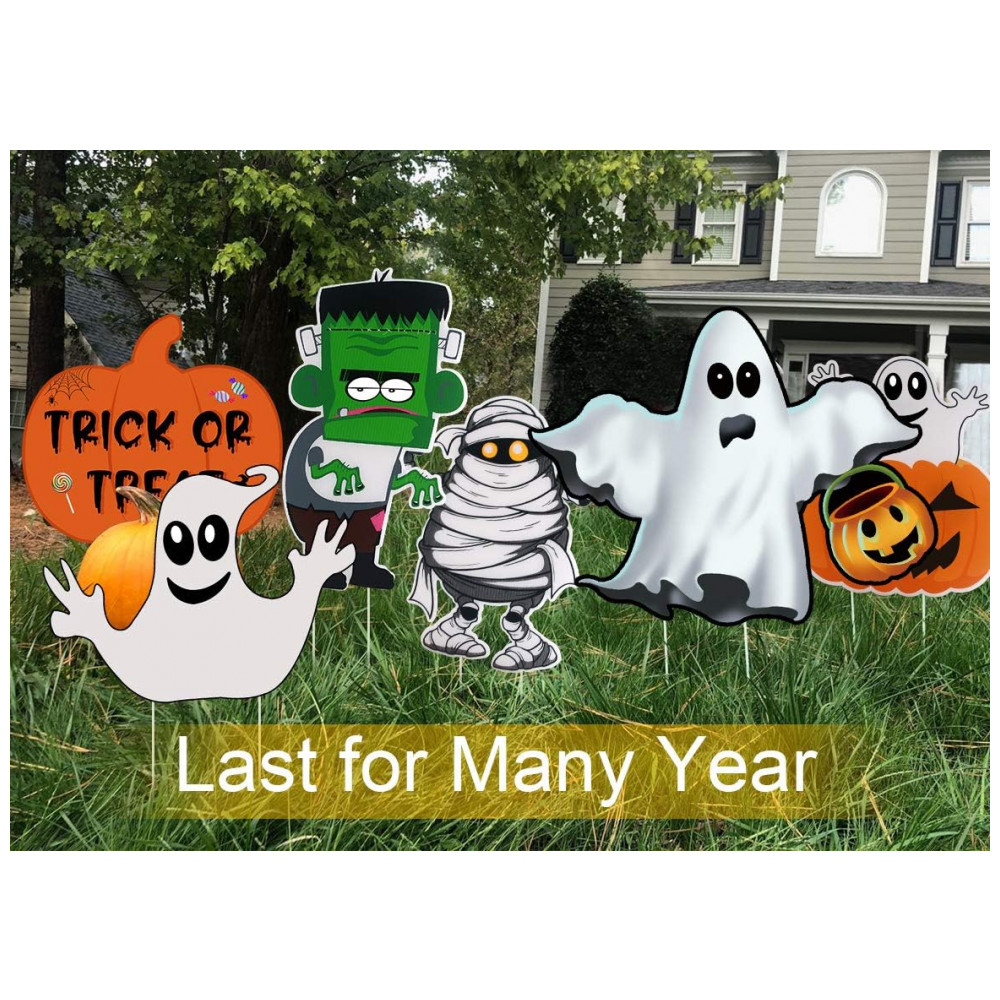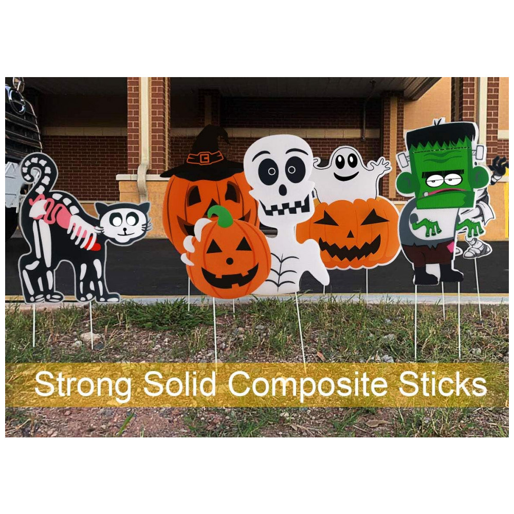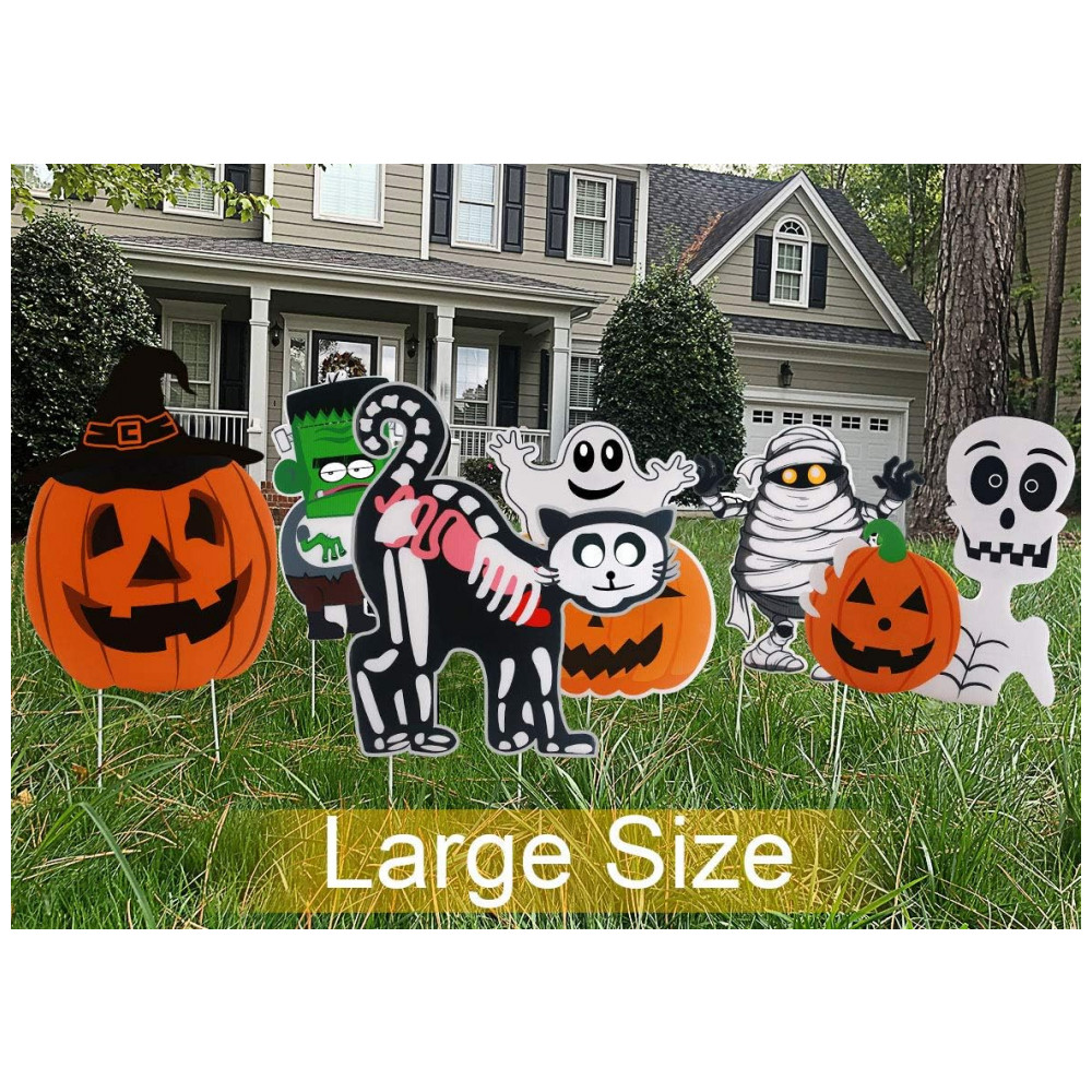 Grandes sinais de decoração de Halloween atraentes com o design mais fofo e um tamanho maior aproximadamente 37, x 30,, ou 0,38 metros x 0,31 metros, tornando os mais fáceis de perceber e mais realistas. Faça uma cena fofa e assustadora na sua noite de Halloween.