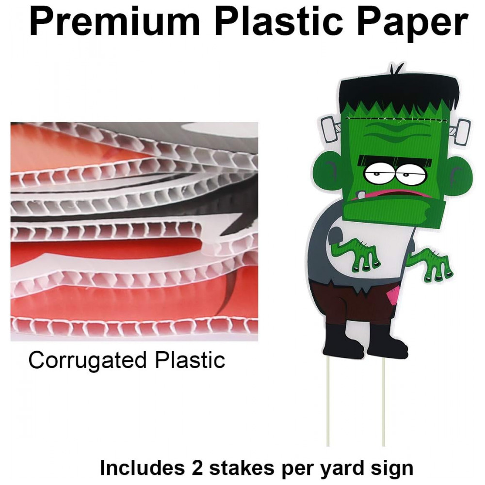 MATERIAL PREMIUM: O conjunto de placas de quintal fantasma é feito de plástico ondulado reforçado. Impressas com gráficos de alta qualidade, estas placas de jardim de Halloween apresentam visuais realistas que dão vida à sua cena de Halloween.