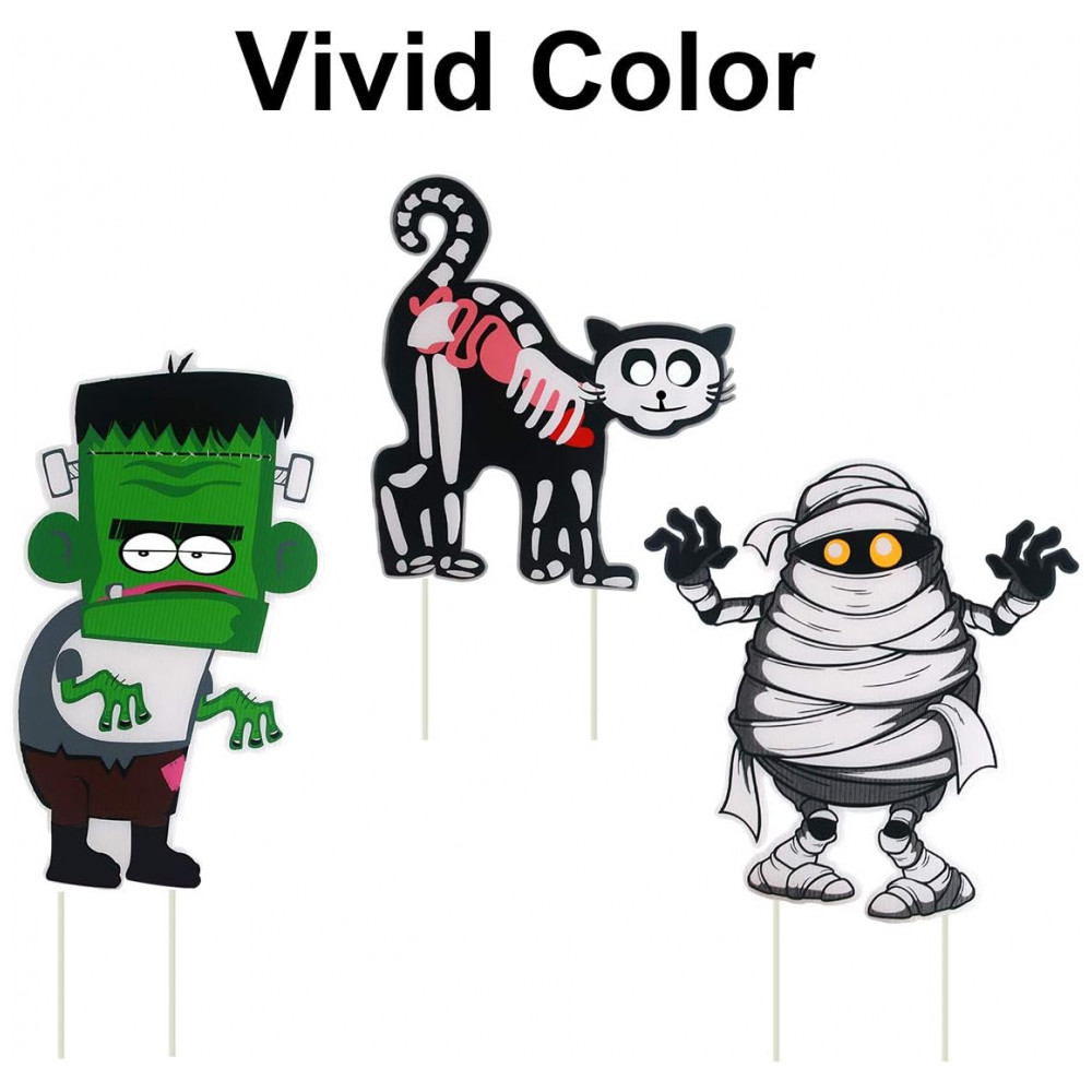 RESISTENTE AO TEMPO: As placas de jardim de Halloween são especialmente projetadas para resistir a todos os climas. Eles são feitos de materiais à prova dágua que resistem efetivamente ao desbotamento, garantindo que suas cores vibrantes permaneçam intactas mesmo quando expostas à chuva ou ao sol intenso.