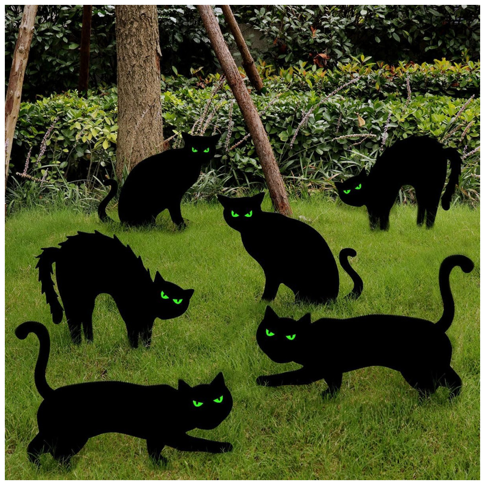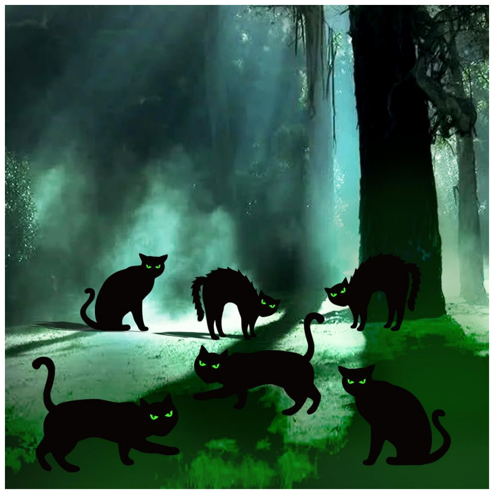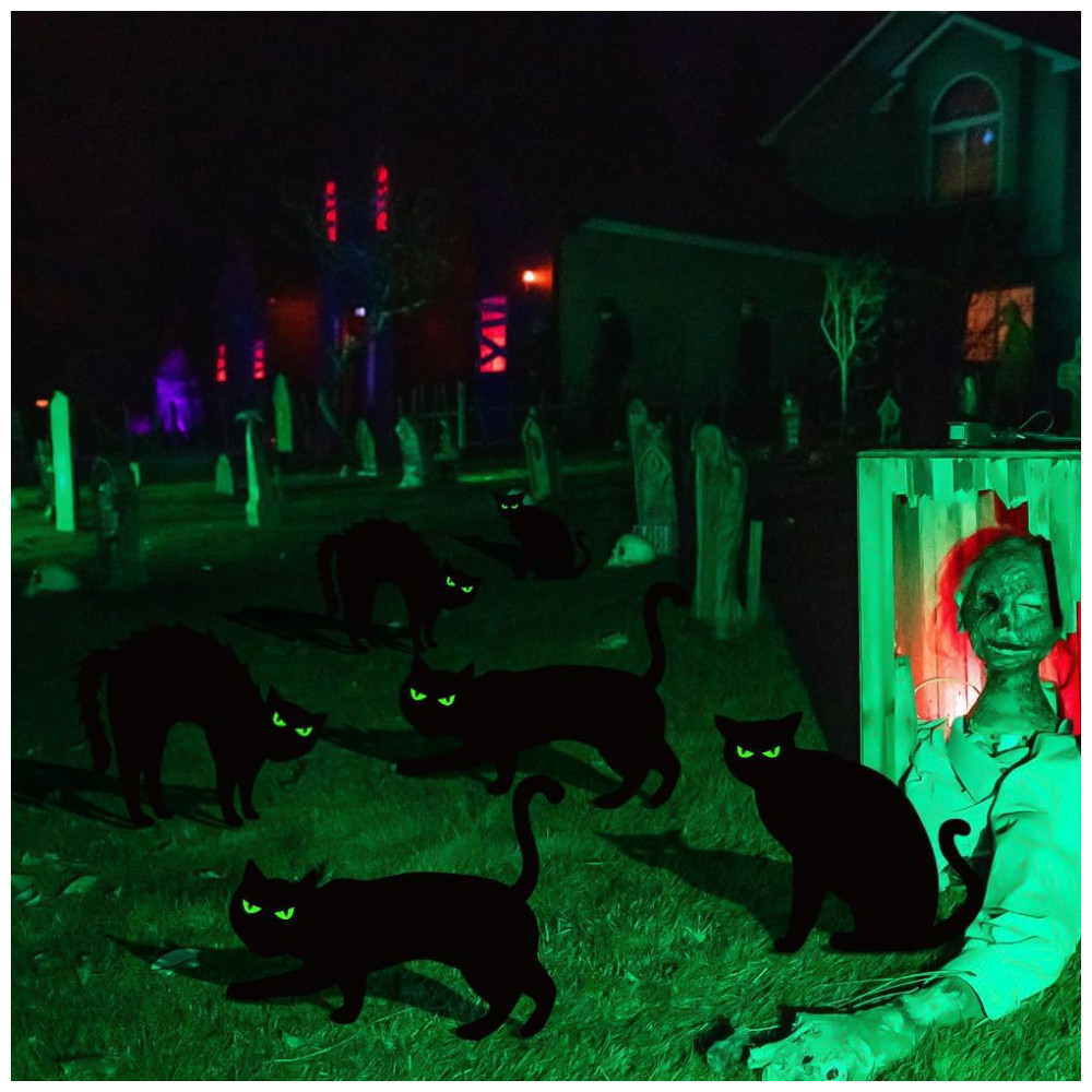 PROJETO de Ivenf: Essas decorações de quintal de Halloween são projetadas em diferentes poses com olhos verdes e fluorescentes, incluindo 2 gatos assustados, 2 gatos sentados e 2 gatos perseguidores. Brilha nos olhos escuros fará uma adição divertida à sua decoração de Halloween à noite.