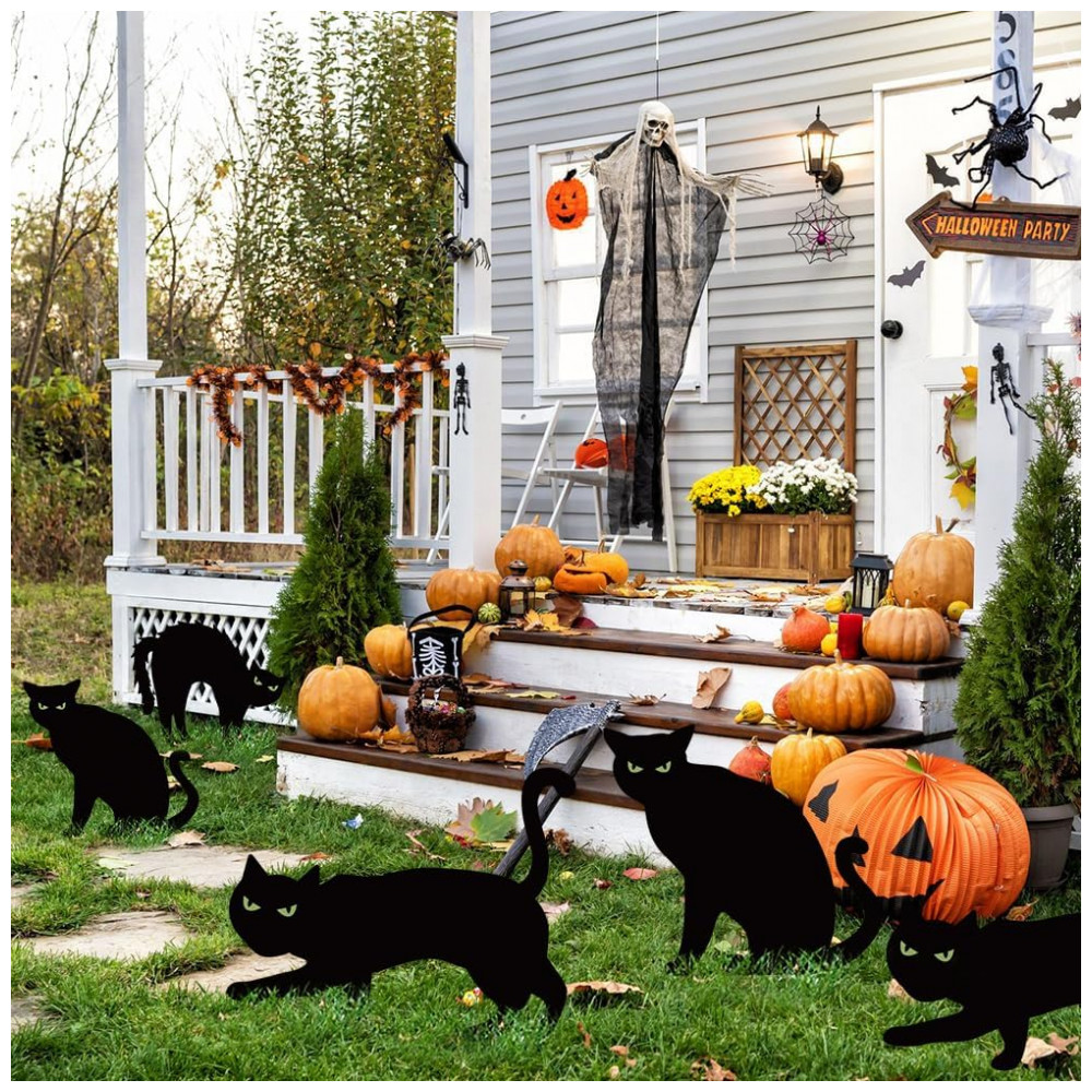 ALTA QUALIDADE: Nossas decorações de gramado de Halloween para gatos pretos são feitas de grossas folhas de plástico corrugado. Robusto e durável como decorações ao ar livre de Halloween. À prova dágua e suporta bem o clima, independentemente do vento ou da chuva.