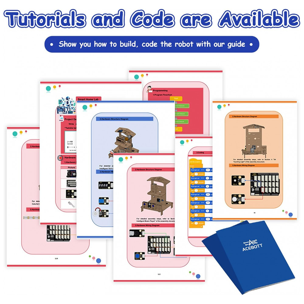 A ACEBOTT é uma marca especializada em kits de robótica, automação e ciência educativa voltados ao ensino de programação, eletrônica básica e projetos STEM para adolescentes e jovens. O modelo QE023-1 é fabricado pela ACEBOTT e inclui tutoriais com renderizações em alta definição, vídeos de montagem e códigos de exemplo acessíveis em sua área de recursos online, facilitando o uso em escolas, clubes de tecnologia e ambientes domésticos.